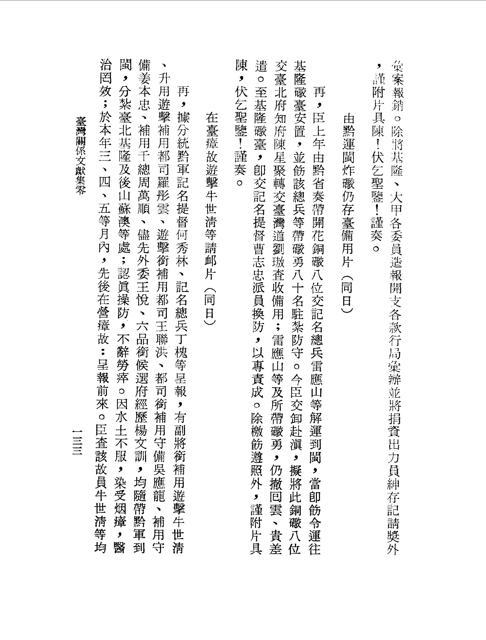臣查該故員牛世清等均在滇、黔軍營,隨臣頻年轉戰各路,疊著勤勞;乃竟以遠戍重洋,相繼瘴故,深堪憫惻!可否仰懇天恩,賞准敕部將該故員牛世清、羅彤雲、王聯洪、吳應龍、姜本忠、周萬順、王悅、楊文訓照軍營立功後在營瘴故例,分別議卹之處?出自逾格恩施。