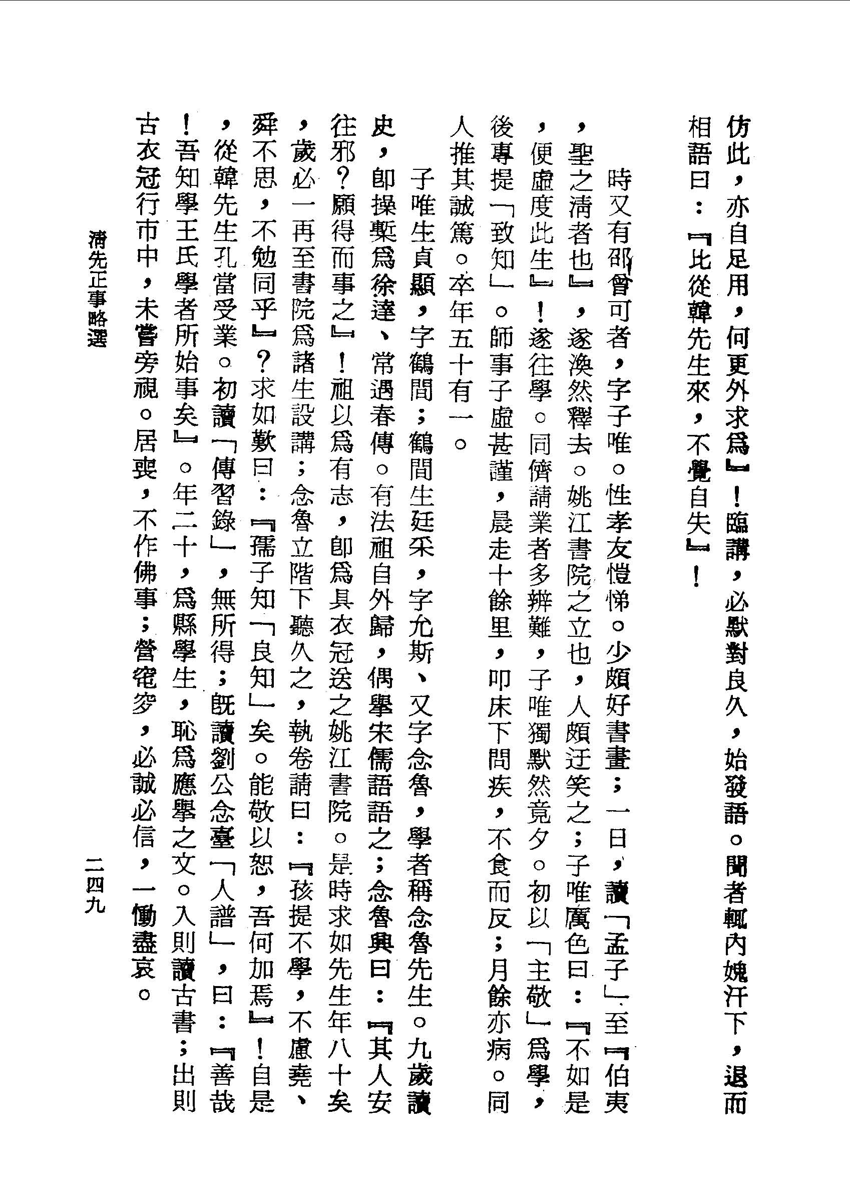 師事子虛甚謹,晨走十餘里,叩床下問疾,不食而反;月餘亦病。同人推其誠篤。卒年五十有一。