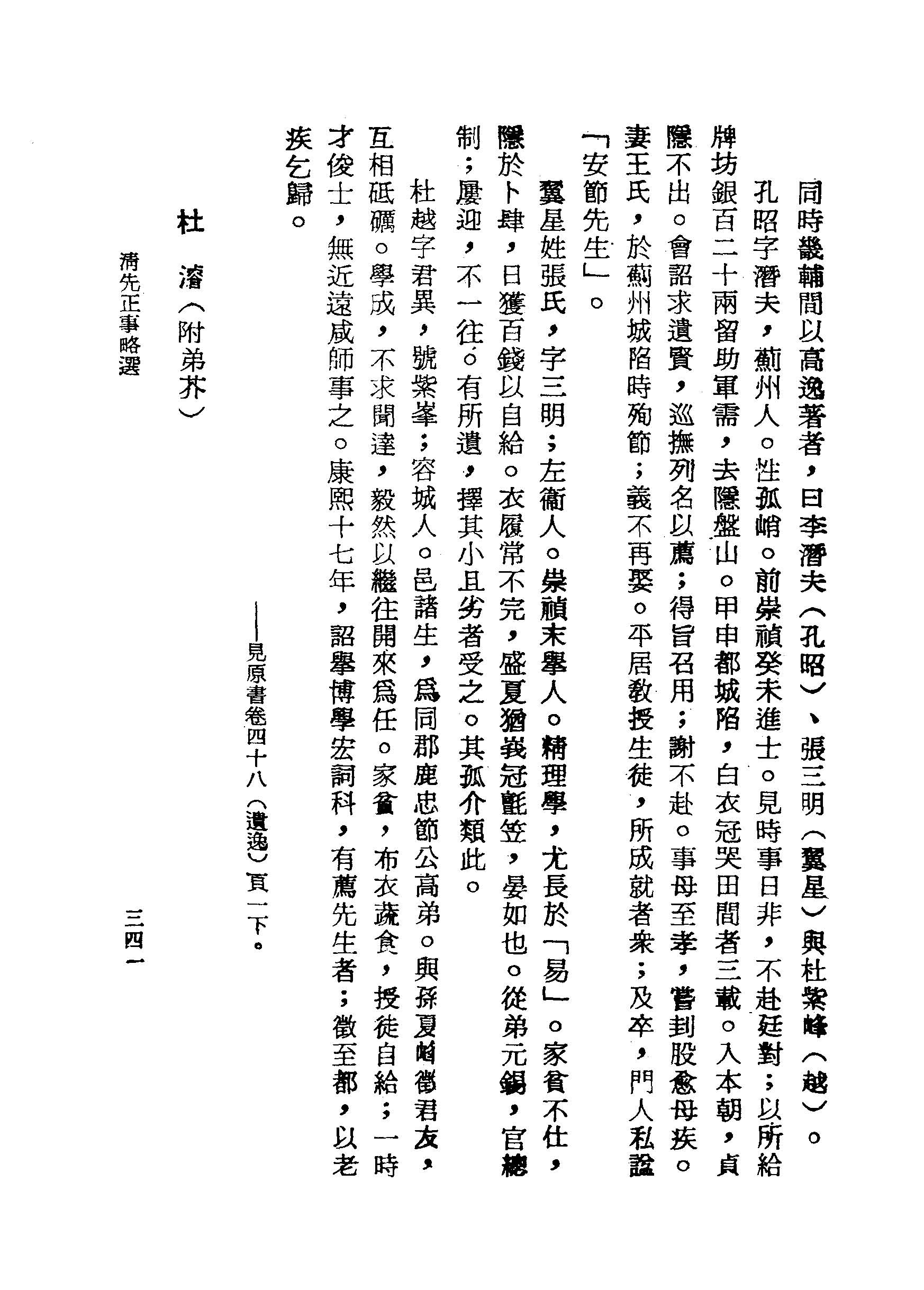孔昭字潛夫,薊州人。性孤峭。前崇禎癸未進士。見時事日非,不赴廷對;以所給牌坊銀百二十兩留助軍需,去隱盤山。甲申都城陷,白衣冠哭田間者三載。入本朝,貞隱不出。會詔求遺賢,巡撫列名以薦;得旨召用;謝不赴。事母至孝,嘗刲股愈母疾。
