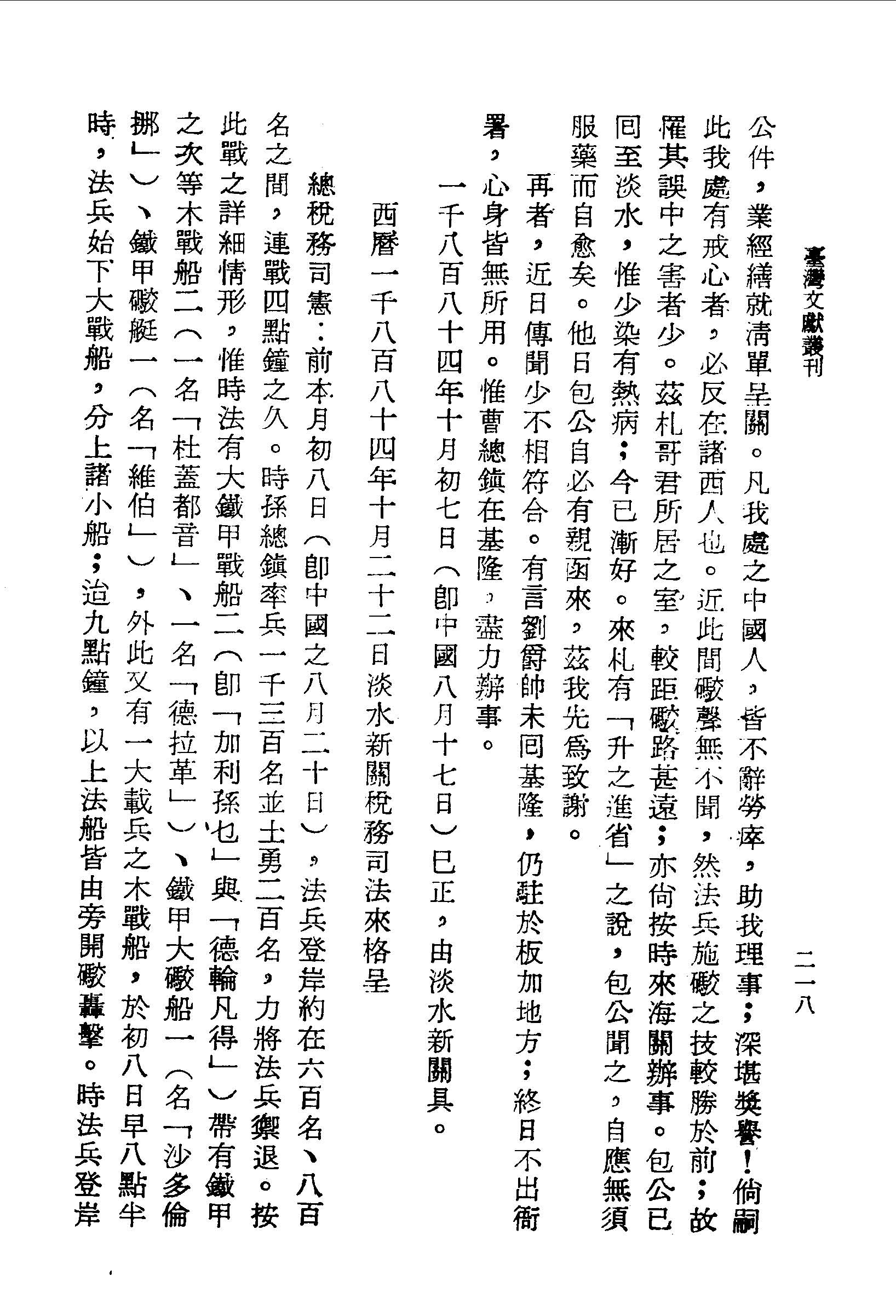 包公已回至淡水,惟少染有熱病;今已漸好。來札有「升之進省」之說,包公聞之,自應無須服藥而自愈矣。