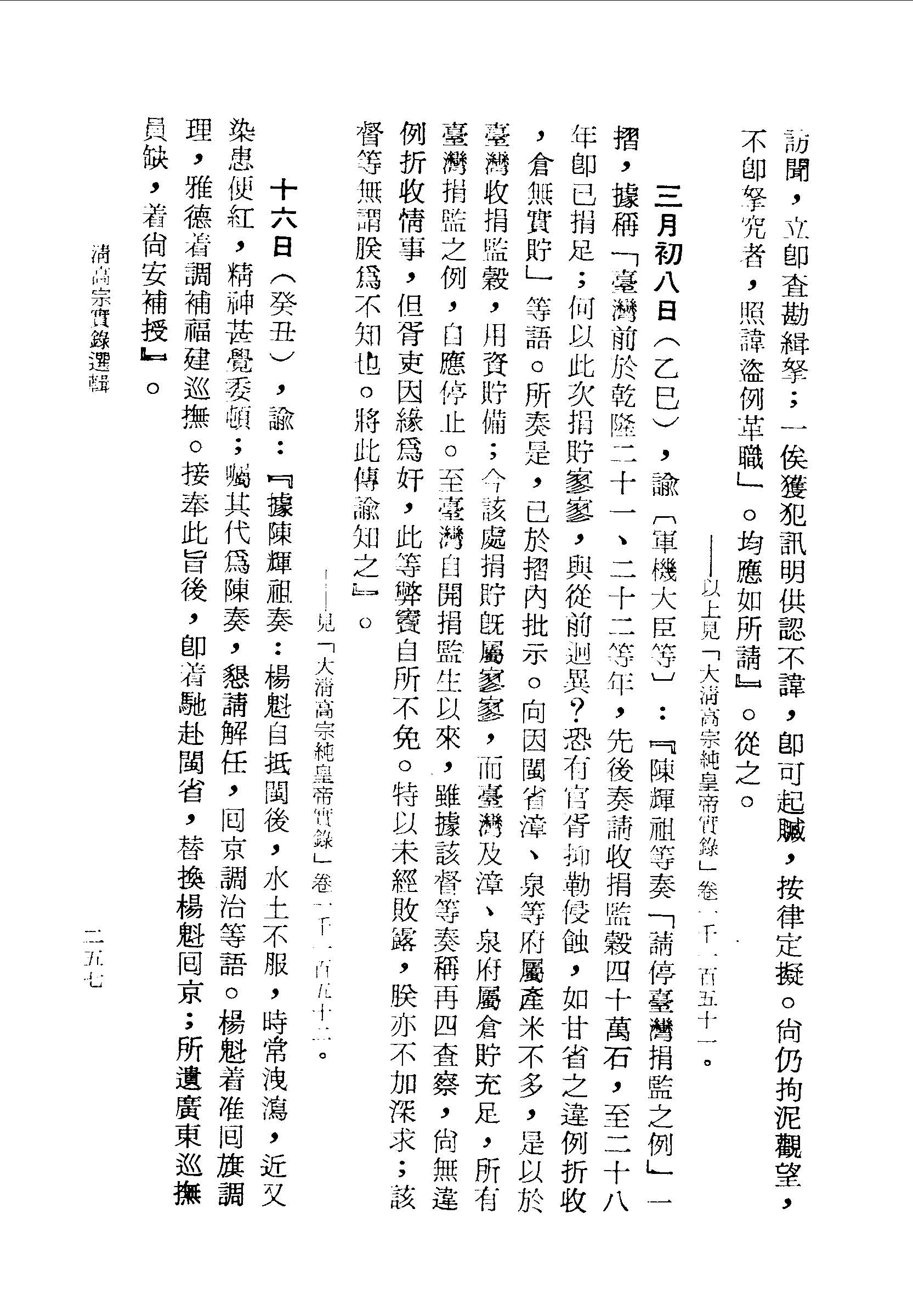 十六日(癸丑),諭:『據陳輝祖奏:楊魁自抵閩後,水土不服,時常洩瀉,近又染患便紅,精神甚覺委頓;囑其代為陳奏,懇請解任,回京調治等語。楊魁著准回旗調理,雅德著調補福建巡撫。接奉此旨後,即著馳赴閩省,替換楊魁回京;所遺廣東巡撫員缺,著尚安補授』。