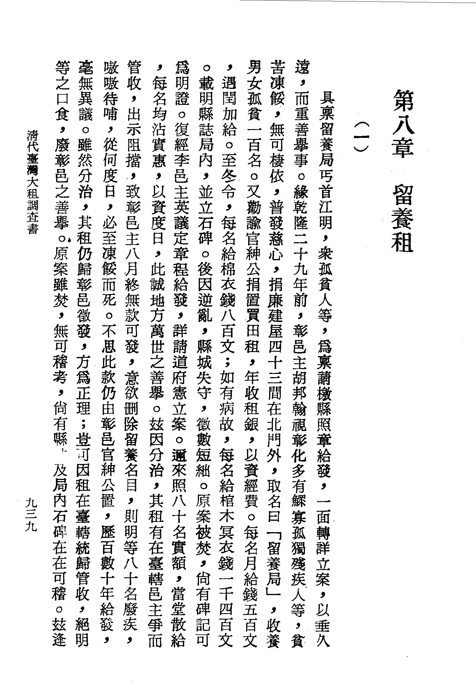 後因逆亂,縣城失守,徵數短絀。原案被焚,尚有碑記可為明證。復經李邑主英議定章程給發,詳請道府憲立案。邇來照八十名實額,當堂散給,每名均沾實惠,以資度日,此誠地方萬世之善舉。茲因分治,其租有在臺轄邑主爭而管收,出示阻擋,致彰邑主八月終無款可發,意欲刪除留養名目,則明等八十名廢疾,嗷嗷待哺,從何度日,必至凍餒而死。