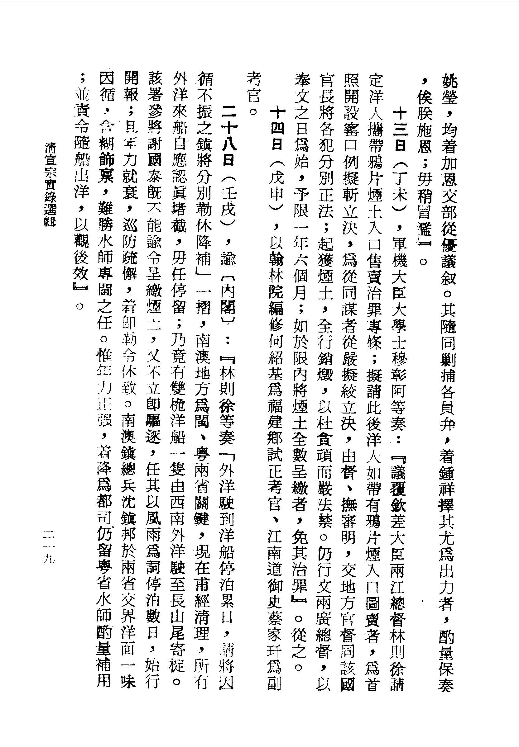 議覆欽差大臣兩江總督林則徐請定洋人攜帶鴉片煙土入口售賣治罪專條;擬請此後洋人如帶有鴉片煙入口圖賣者,為首照開設窰口例擬斬立決,為從同謀者從嚴擬絞立決,由督、撫審明,交地方官督同該國官長將各犯分別正法;起獲煙土,全行銷燬,以杜貪頑而嚴法禁。