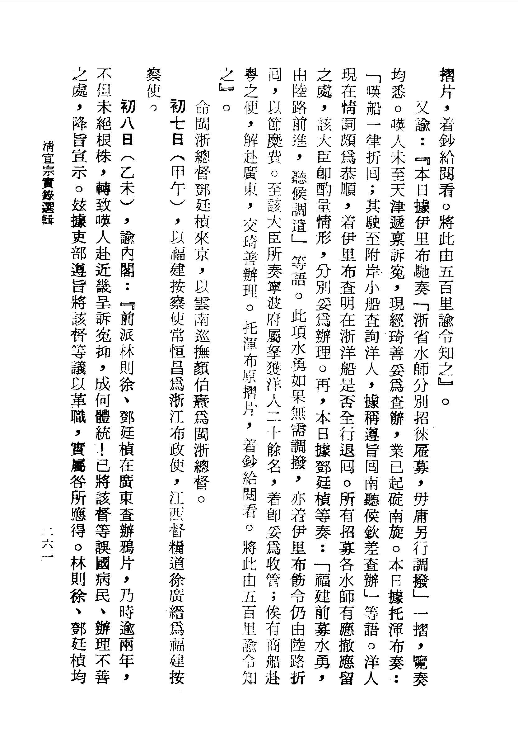 前派林則徐、鄧廷楨在廣東查辦鴉片,乃時逾兩年,不但未絕根株,轉致口英人赴近畿呈訴寃抑,成何體統!已將該督等誤國病民、辦理不善之處,降旨宣示。茲據吏部遵旨將該督等議以革職,實屬咎所應得。