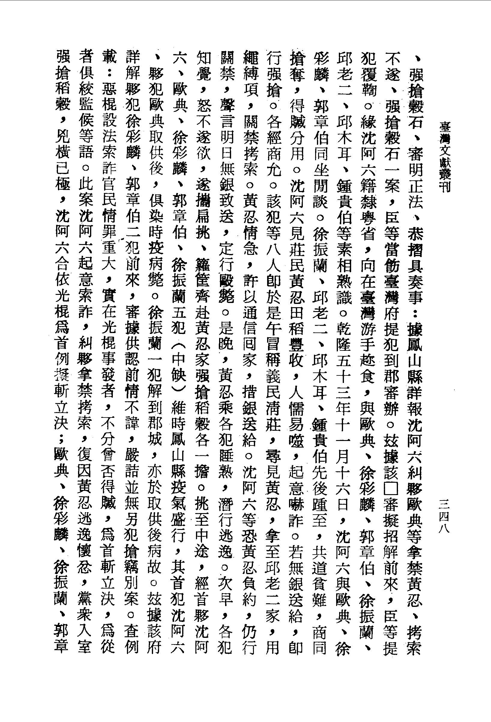 挑至中途,經首夥沈阿六、歐典、徐彩麟、郭章伯、徐振蘭五犯(中缺)維時鳳山縣疫氣盛行,其首犯沈阿六、夥犯歐典取供後,俱染時疫病斃。