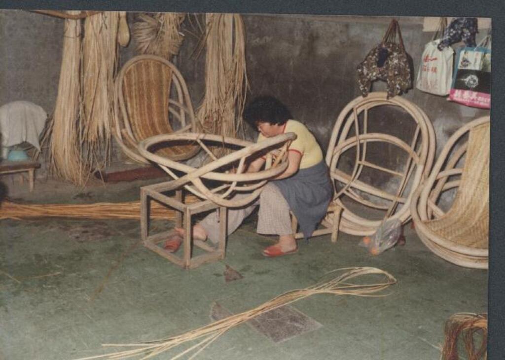圖泰山籐業工廠員工正在做銷路最大的旋轉籐椅籐條編織。泰山籐業早期在三重市重陽路上是一家頗具規模籐傢俱編製工廠,產品多元化又精緻,是台灣地區一家著名的專業外銷籐業工廠,也是三重一家老牌籐品廠家。早期台灣籐廠不少;然而現在台灣籐條取得較困難,且家戶籐傢俱用量銳減,泰山籐業近年老板戴政衛因肺癌逝世(註:戴老板本名戴丙丁,對外一直以戴政衛名義做生意,直到82歲時因肺癌去逝),工廠結束營業。原工廠任職的戴太太及二位女兒今日已改從事進口柚木傢俱販售,延續戴老板的餘業。目前泰山籐業員工老成凋謝,只剩外包的劉己章和太太謝慧敏,60多歲的劉己章現職大樓管理員,據他說,民國65年(1976)時他為泰山籐業代工組合約5、6年時間,主要以手工打條方式組合籐椅底座,泰山籐業以外銷迴轉椅著稱,盛時外銷一次有好幾個貨櫃,他的太太謝慧敏原先是泰山籐業工廠員工,後因籐業生意漸蕭條才改為在家裡代工,由工廠直接將籐料載到家裡由劉氏夫婦趕工處理。