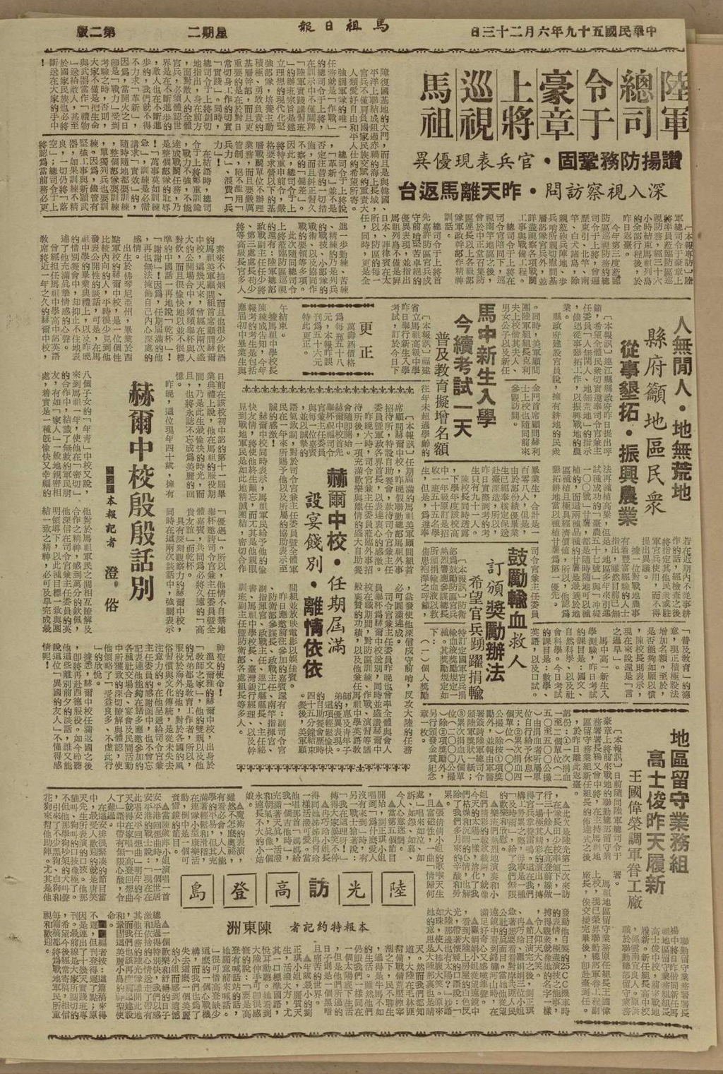 在馬祖的美軍顧問團除了協助馬祖駐軍的軍事作戰、建設與後勤供應外,因早期馬祖地方教育師資的缺乏,美軍顧問團人員也會協助作為馬祖中學的英文師資,其線索透過《馬祖日報》的報導可窺知一二。依據《馬祖日報》民國59年6月23日「赫爾中校殷殷話別」之新聞,為美軍顧問團首席顧問-赫爾中校因服務期屆滿即將離開馬祖調返美國,出席公開場合說發表感謝談話之側寫。因赫爾中校於馬祖中學高中部擔任英語教師約一年時間,其一的公開場合便為馬祖中學初中部的畢業典禮致詞,致詞中也表達他依依不捨離開馬祖的心情。