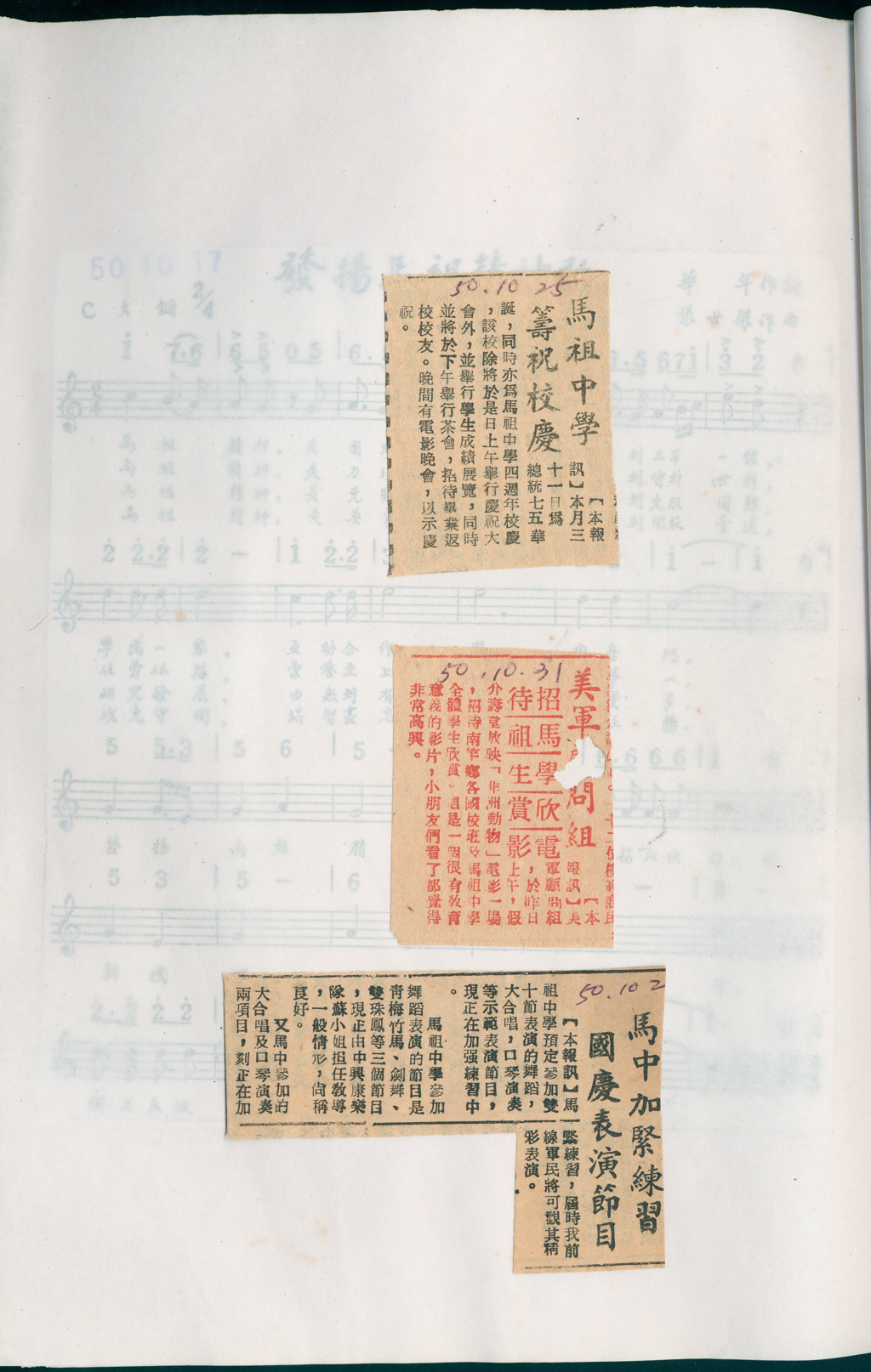 此剪報收存於馬祖國立高級中學之《新聞集錦》內,來源源自於《馬祖日報》每日的新聞報導。由校內職員王榕樂先生(現已退休),翻閱《馬祖日報》後將有關馬祖中學之新聞報導全數剪下收集貼入新聞集錦內,以年分分類之。《新聞集錦》一共收存1957年(民國46)年至1992年(民國81年)的36年的剪報資料,可從中了解新聞內紀錄的馬祖中學。
