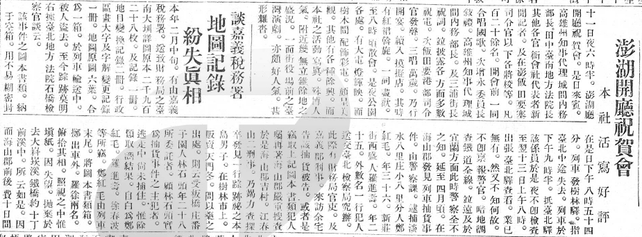 1926年2月21日嘉義稅務出張所以木箱裝裝運的2928張軍機地圖、記錄一冊,地目變換紀錄二冊、行政區畫大字及字解變更記錄一冊、地圖原圖六份於北上途中失竊。