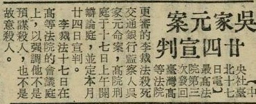 「吳家元命案」發生於1963年9月13日晚間9時30分左右,高齡70歲的交通銀行監察人吳家元在中山北路105巷遭人刺殺,身中42刀身亡。經過警方調查,發現兇手是來臺灣謀生的香港黑社會名人李裁法,李裁法在抗戰期間與吳家元已有深厚交情,然而這段友誼卻在晚年變質。李裁法一度偷渡回到香港,在中華民國警方與香港警方的合作下,李裁法被逮捕並移送回到臺灣受審。