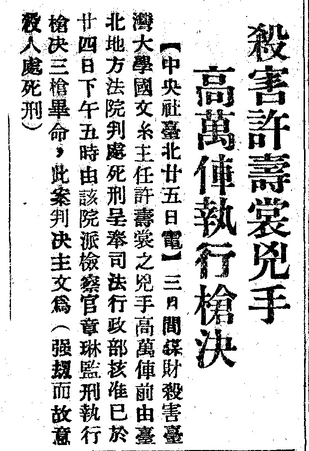 「政治暗殺說」的疑點,則首先在於國民黨政府手下一堆外省專業特務,但卻找了個本省業餘竊賊來執行這起行動?另外,關於家屬質疑的〈和平日報〉應為兇手攜來一點,既然案發後是警察「以報紙包起來」破壞了柴刀上的指紋,那麼這份報紙很有可能是該名警察帶來的。而常被用來做為此說有力佐證的許案主審官陳醒民在1950年代發表的〈自白〉,則一概忽視了陳醒民提出此份〈自白〉的是否懷有討好「新中國」的政治動機。