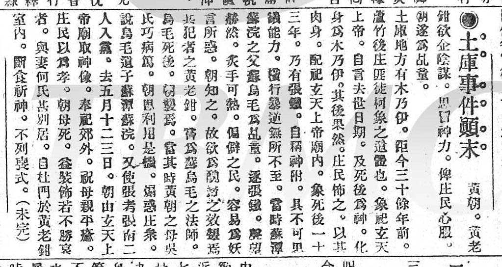 新聞通篇寫出土庫事件發生緣由,但對於鄉民之信仰抱持貶抑看法,判斷其乃愚昧象徵,同時認為這種愚昧信仰使得野心家有了可乘之機,文中亦表達作者對當局的觀點。