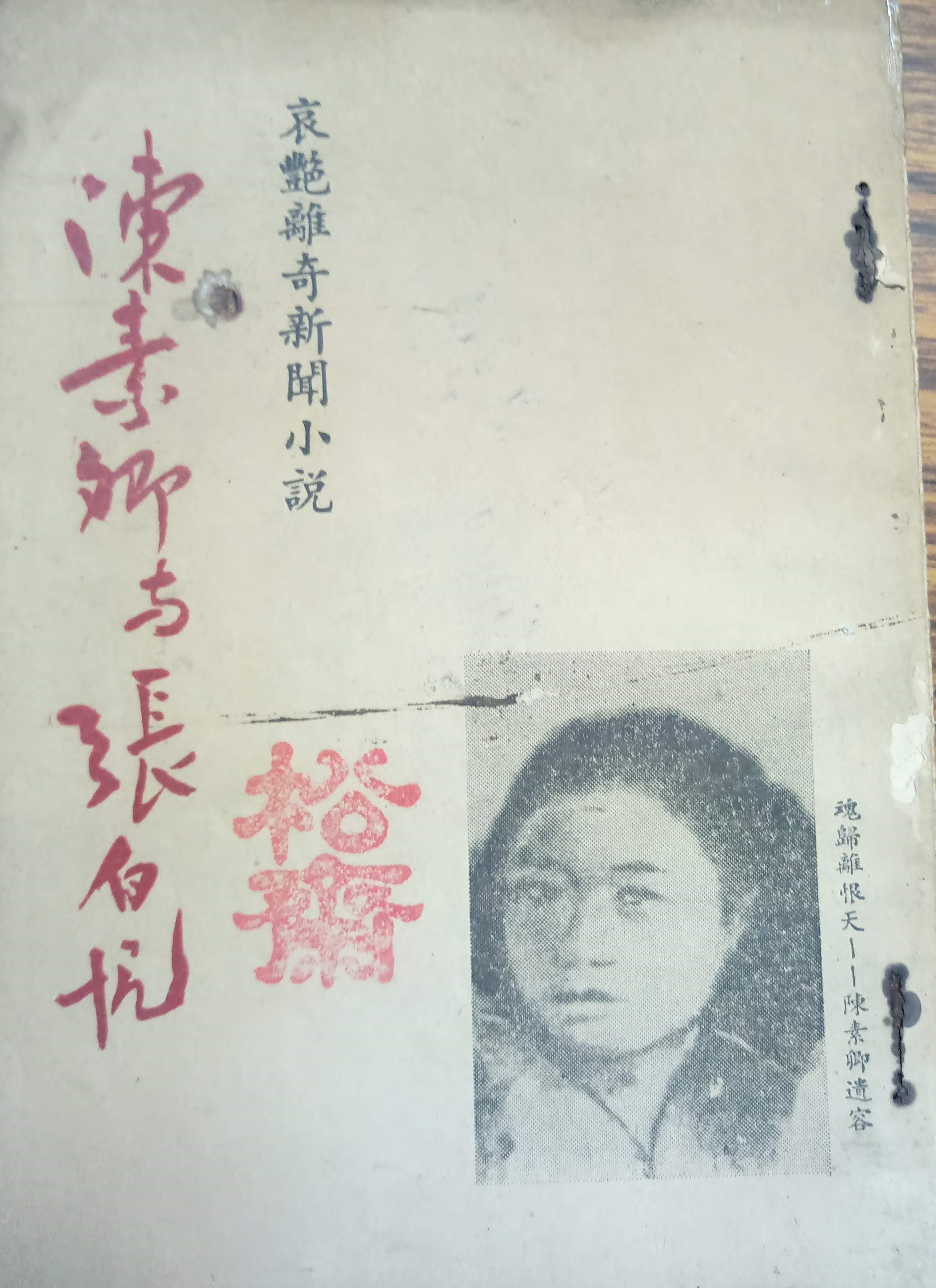 圖片為《哀艷離奇新聞小說陳素卿與張白帆》書影,作者不詳,裕齋出版社出版,出版年不詳,出處不明,攝影者未知,CC BY-SA 3.0,建立於:2019年12月05日。
