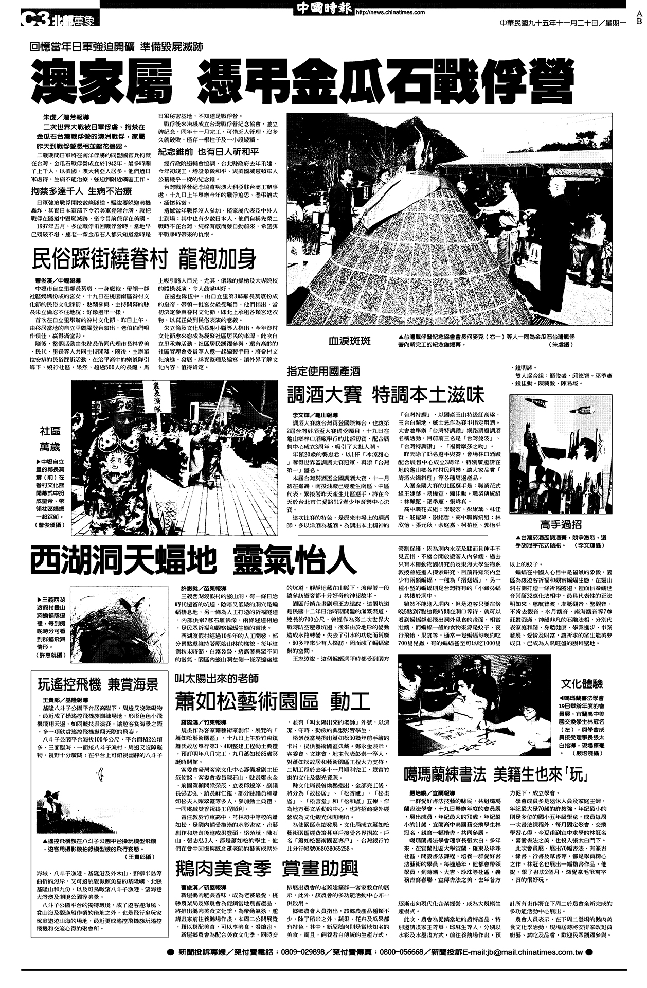 本篇為民國95年(2006)11月20日《中國時報》C3版,一則由曹俊漢撰寫,題為〈民俗踩街繞眷村 龍袍加身〉的新聞。