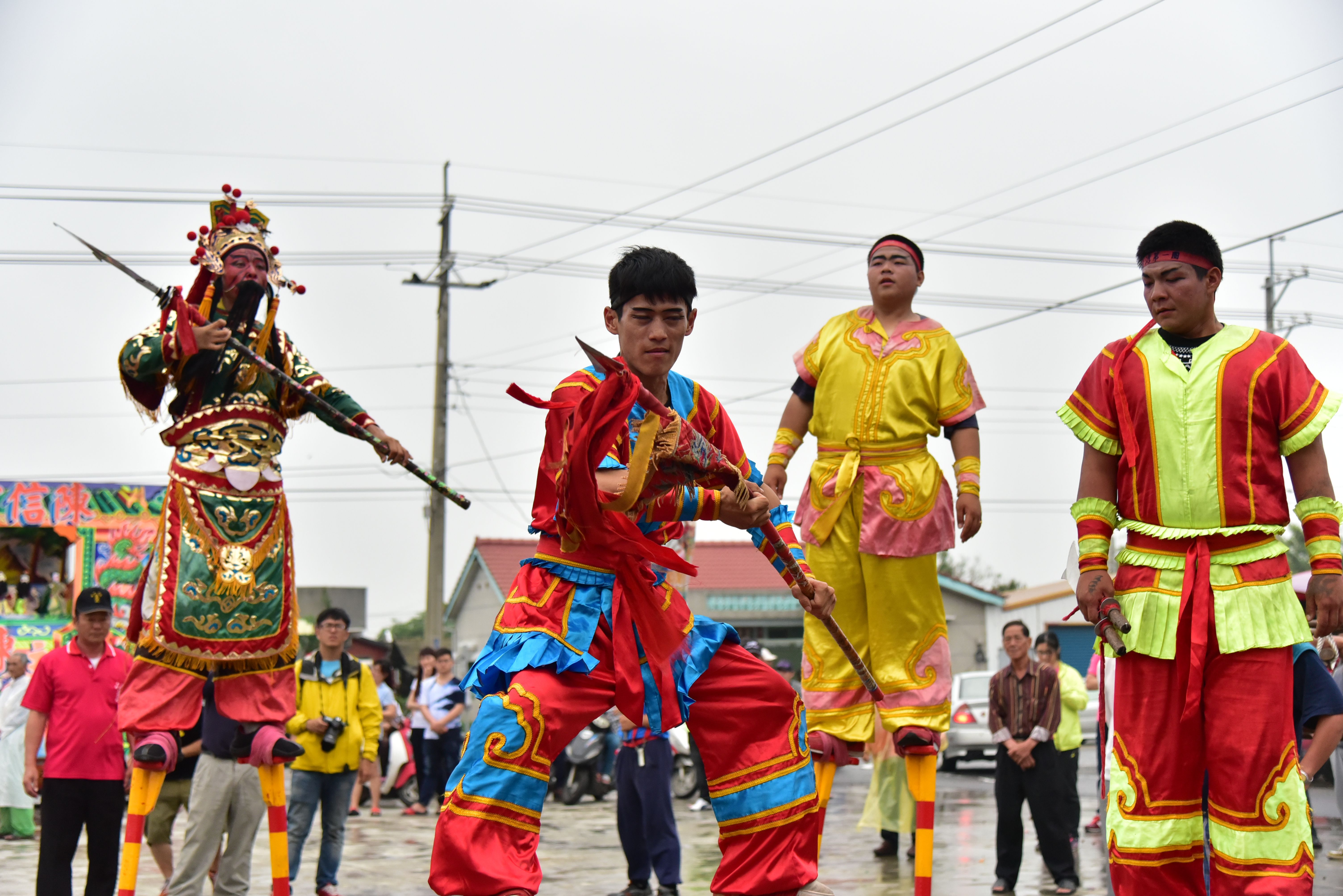 中洲高蹺陣於1954年創立,主要是為了參與學甲上白礁祭典,主要成員有關公與馬伕、馬童等人,關公保二嫂由於含有劈腿、單腳站立等,難度較高的動作,演出刺激,而成為中洲高蹺陣的拿手戲目。