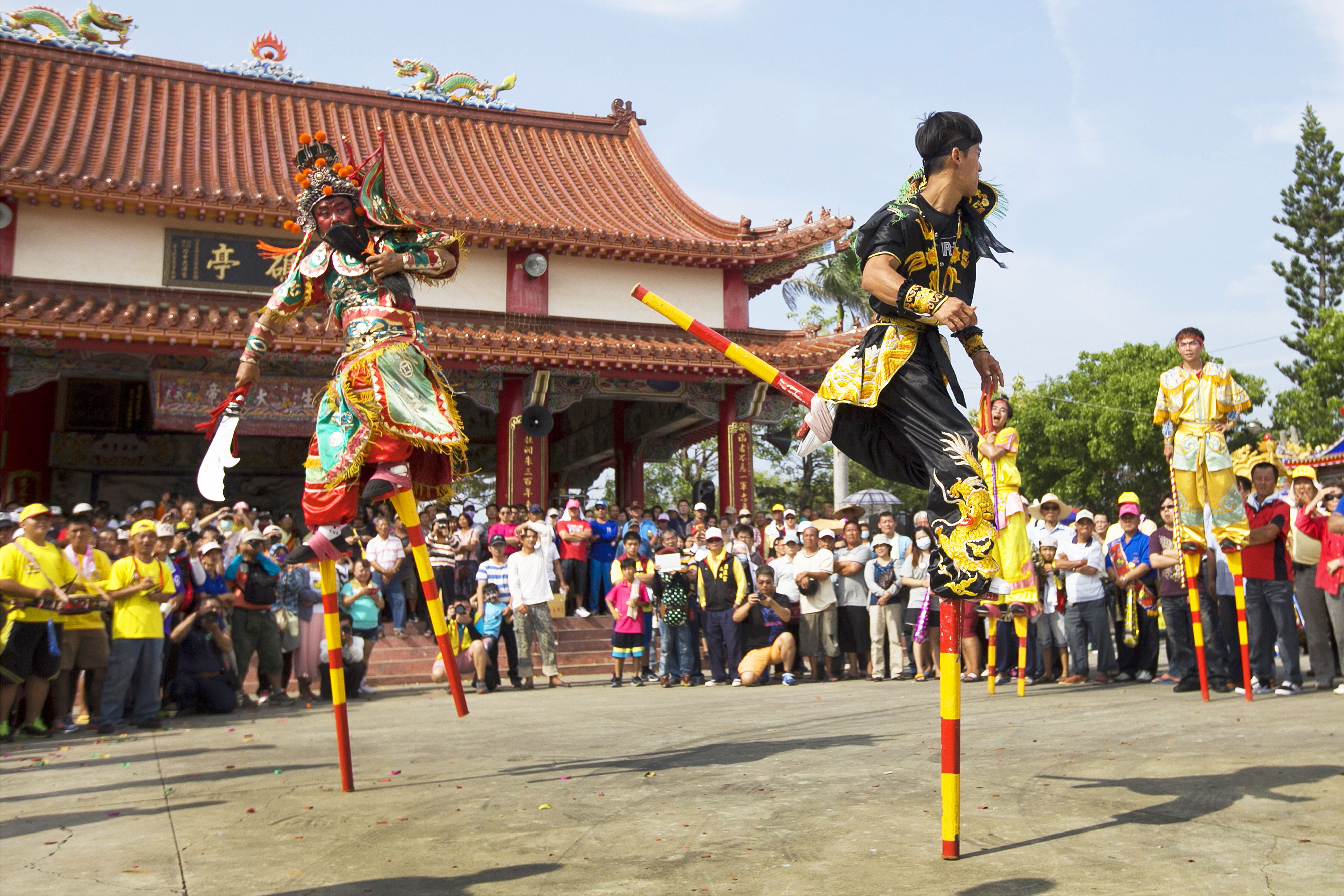 中洲高蹺陣於1954年創立,主要是為了參與學甲上白礁祭典,主要成員有關公與馬伕、馬童等人,關公保二嫂由於含有劈腿、單腳站立等,難度較高的動作,演出刺激,而成為中洲高蹺陣的拿手戲目。