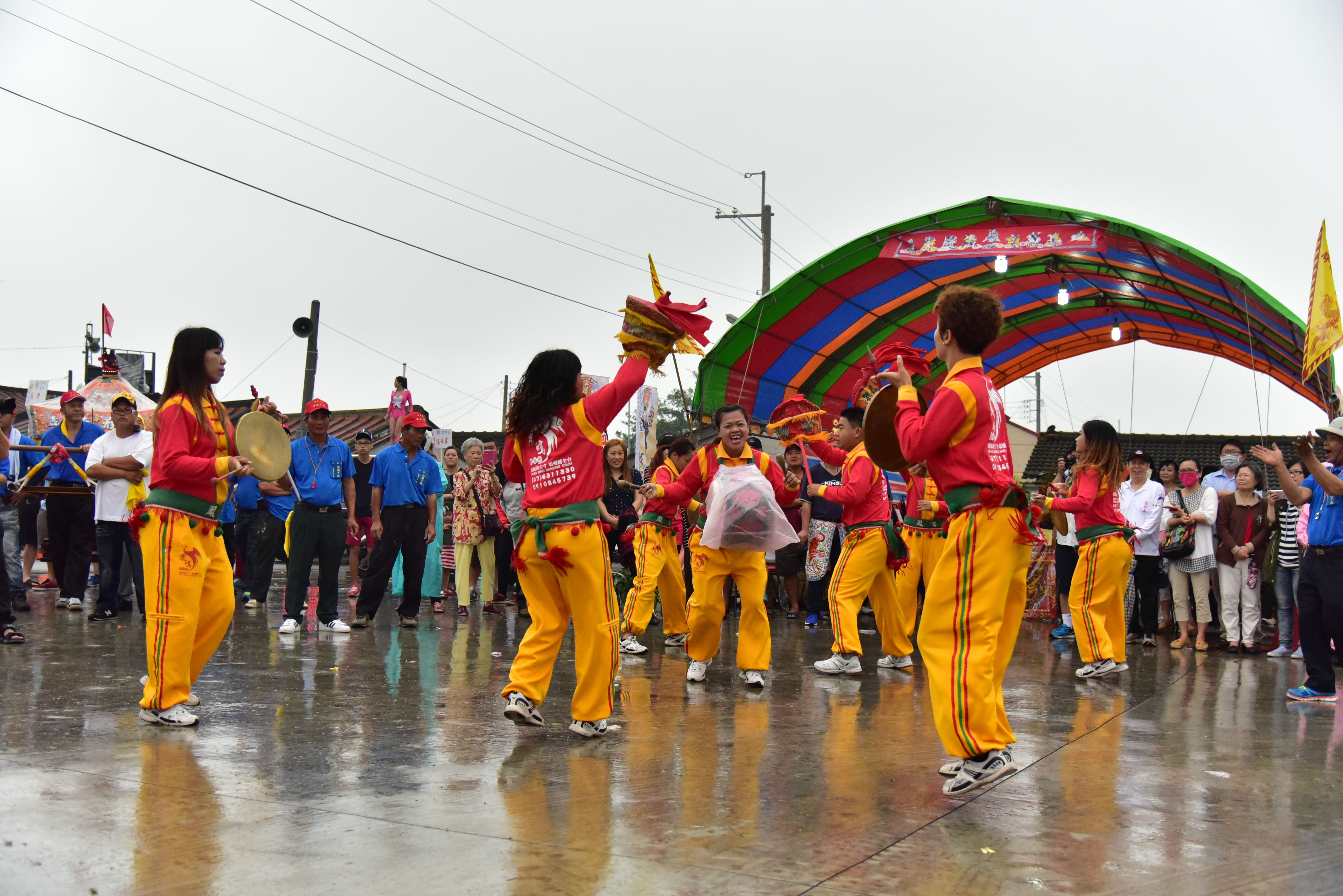 跳鼓陣以大鼓、鑼、涼傘為基本配置,隊員敲打節奏並扭腰擺臀,充滿動感,職業跳鼓陣則更會增加下腰,翻滾,人體疊羅漢等高難度特技表演。現代的跳鼓陣則除了傳統的跳鼓之外,融合了現代舞蹈,重新編排陣勢,並增加現代熱舞或傳統舞蹈表演。
