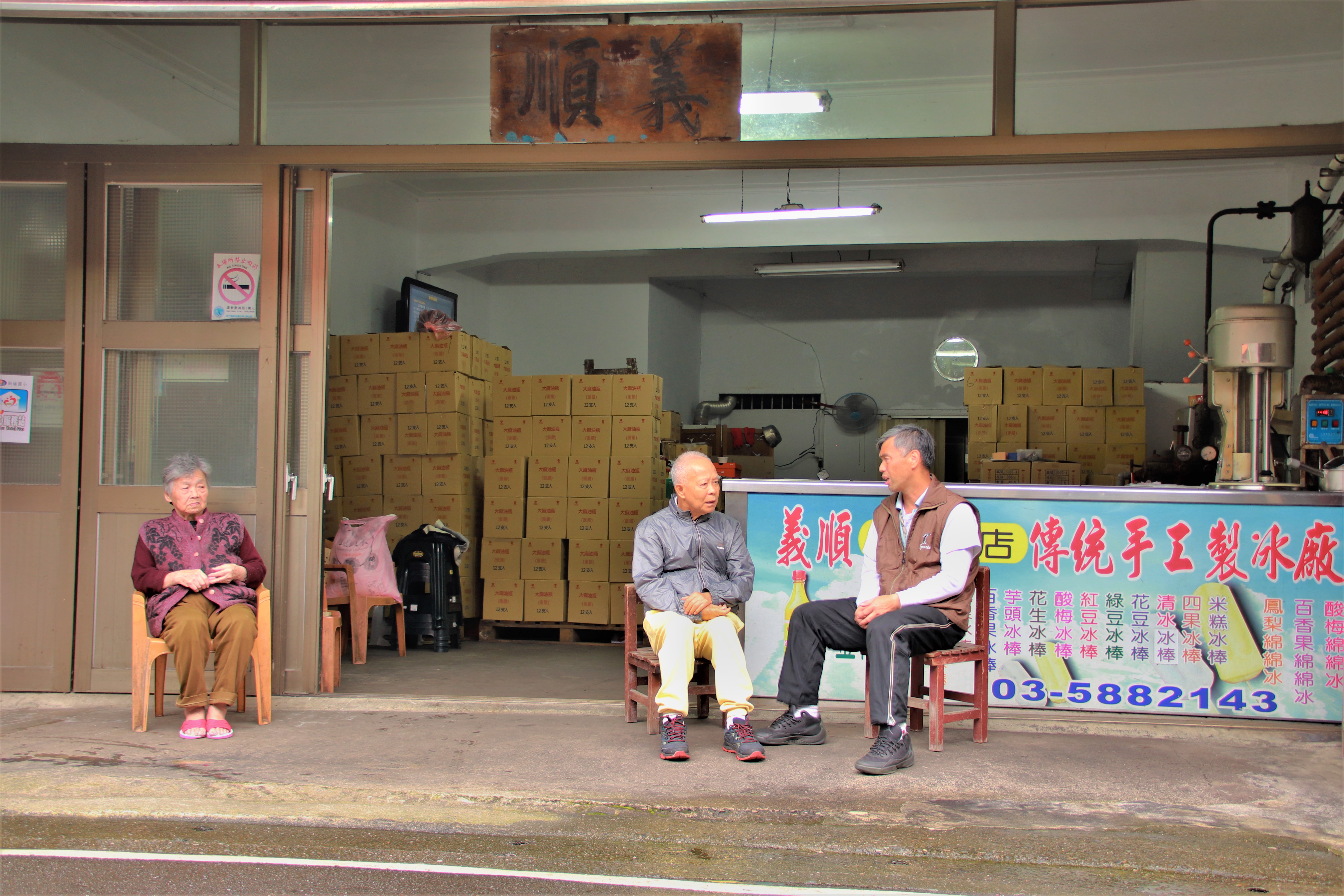 圖片所在地是位於關西鎮中正路,拍攝時間是2019年(民國108年)。圖片一是牛耕米冰棒,由於牛耕米沒有批發讓農會單位收購,是以自給自足方式銷售,而現今消費者飲食習慣不以米食為主,所以牛耕米的理念需要開發出多元化商品,才得以推廣,因緣際會下認識了新埔鎮百年冰店「義順冰店」,義順冰店老闆,常常會與其他單位合作開發新產品,因此共同研發出牛耕米冰棒。圖片二是義順冰店經營者,左邊是第二代老闆娘,中間是冰店的鄰居,右邊是第三代經營者,目前義順冰店已傳承至第四代經營。