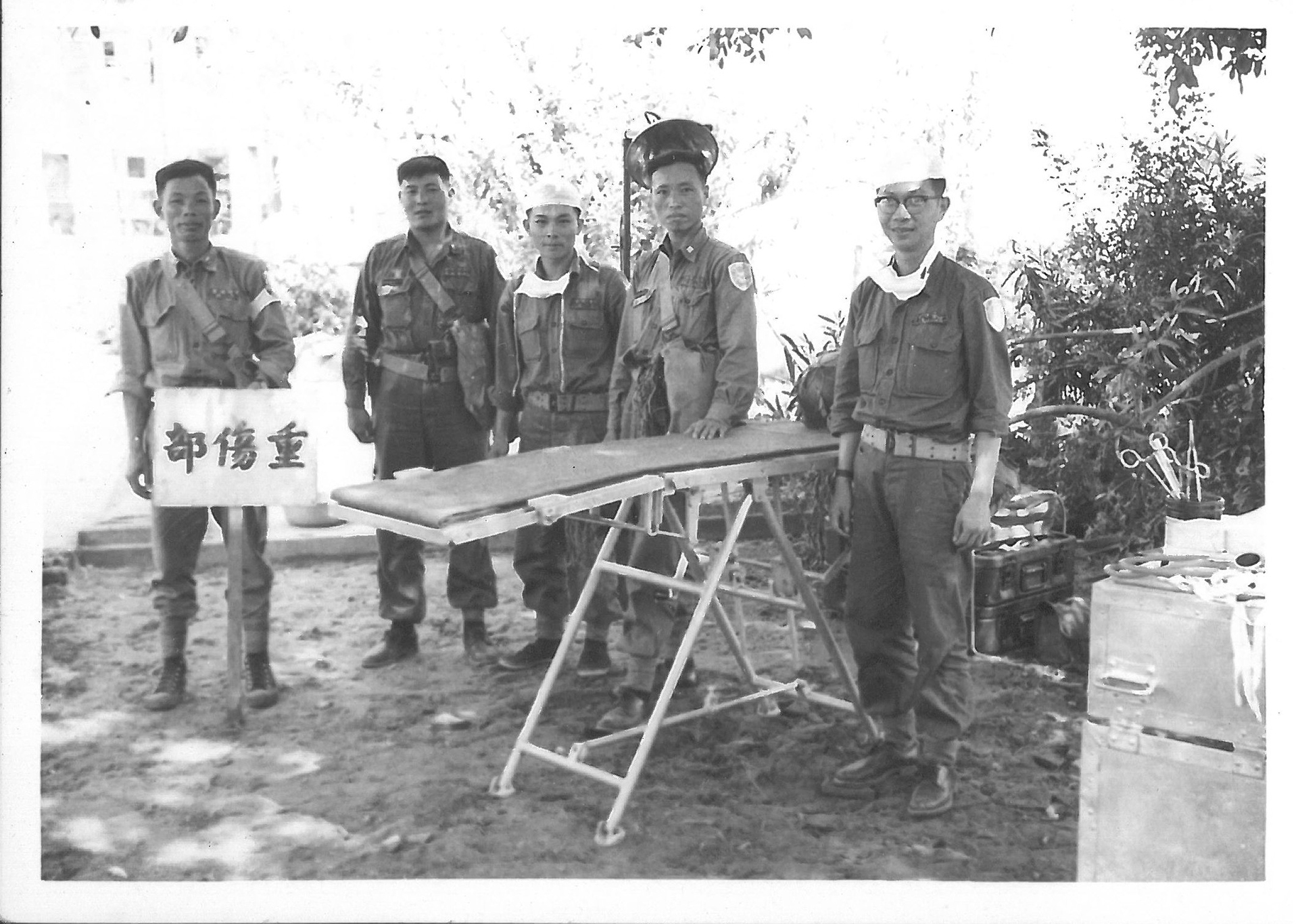 本張照片是1930年出生於山東的李為芝,在後來派駐金門時期擔任軍醫官參與演習的留影。國共內戰期間顛沛流離,一路從山東到南京時,當過中醫的父親卻在南京走了。受父親以及戰亂影響,李為芝在民國37年考進鎮江軍醫院學習,開始踏入軍隊醫務工作的行列。後來,國共內戰局勢轉變,李為芝跟隨國民政府軍轉進舟山群島,看到戰亂時代下,人們即使往生仍不得入土為安的辛酸與無奈,從而立誓要救治更多人。來到台灣以後,因故編入軍隊的衛生連,也就跟隨部隊四處移防,一直飄泊不定,直到1975年與澎湖竹篙灣陳秀雲小姐結婚,才終於在台灣穩定下來,好像找到可以停泊依靠的港灣。