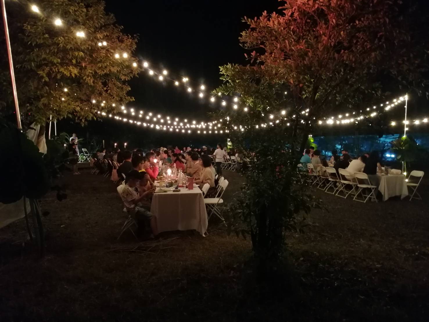 照片拍攝於民國109年10月12日,拍攝地點為新平溪煤礦博物園區的綠地廣場,照片由新平溪煤礦博物園區提供,主要紀錄新平溪煤礦博物園區的文化系列活動,圖中呈現多人前來參與晚宴,晚宴以高級的自助餐點輔以周遭燈光照明點綴煤礦遺產方式進行。本次活動透過坑口的遺址群延伸至山下的選洗煤場施放天燈,讓活動舉辦能以煤礦產業系統的軸線進行。過去煤礦開採的產業養活了聚落許多人們,在後工業化時代的新平溪園區則期待透過具有創意的文化觀光來創造在地的經濟產值,以促進地方再生改善人口衰退為目標持續努力著。