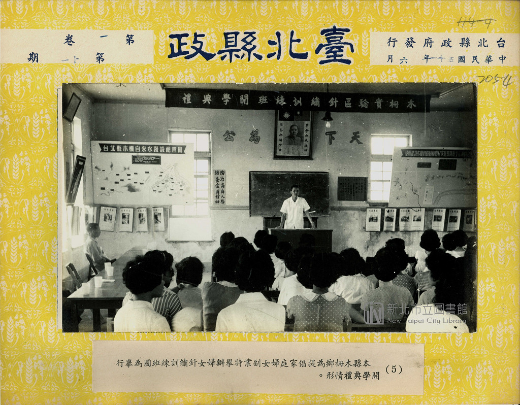 照片於民國51年(1962)6月拍攝。當時台北縣木柵鄉為提倡家庭婦女從事副業,特別於地方舉辦婦女針繡訓練班,照片為當年舉行開學典禮之情形,可以看出座位滿席,前來上課的婦女相當踴躍。