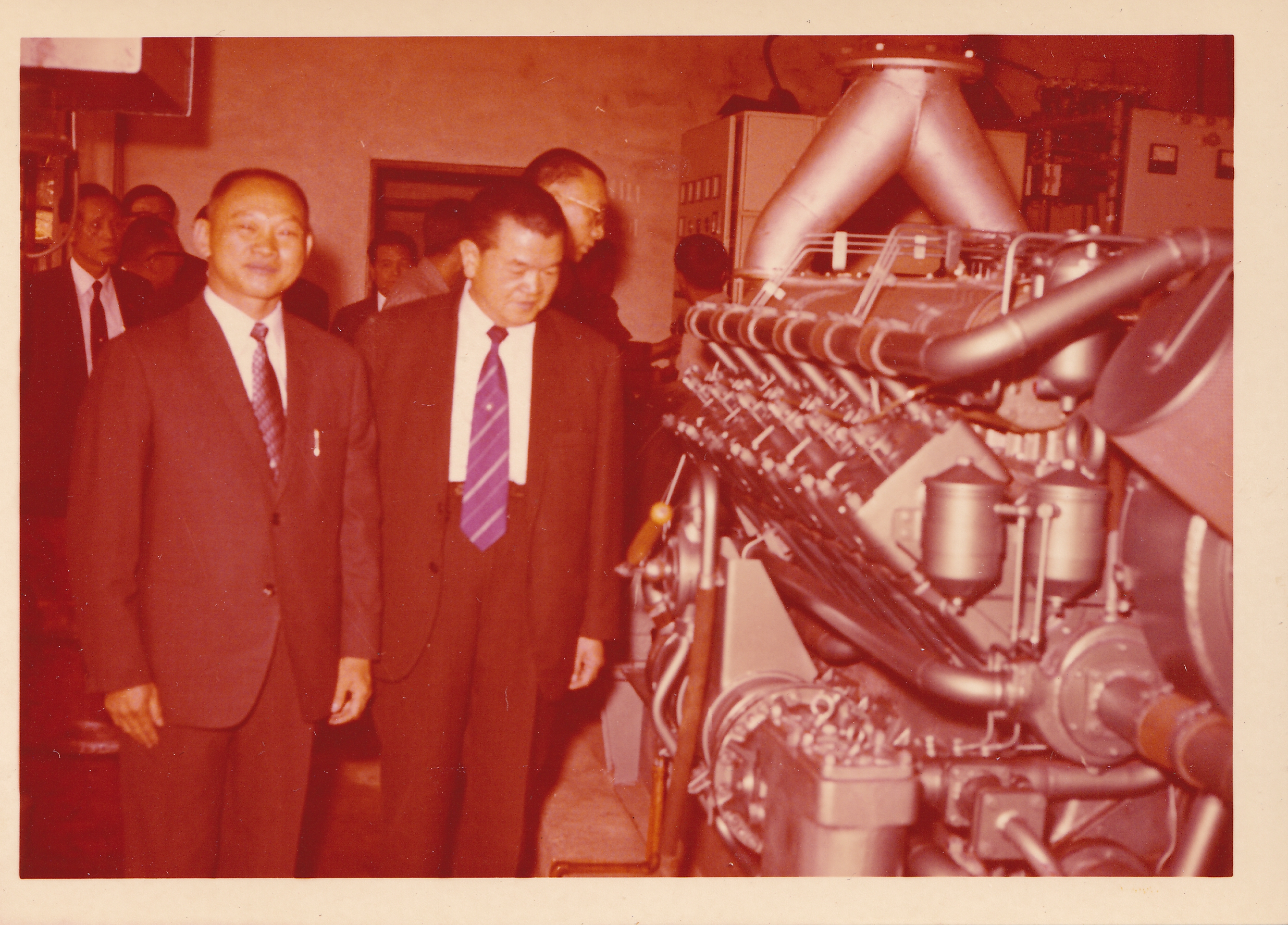 此照片拍攝於民國61年(1972),地點為新北市三峽區的海山一坑,主要紀錄當時臺灣省議員拜訪海山一坑的礦業機具設備之場景。海山一坑為臺灣地區的模範礦坑,更是三峽地區重要的礦場,設置許多先進的礦業機械設備。海山一坑的煤層質較硬,必須以爆破採煤手法掘進,然而還須考量煤屑粉塵的蒐集與處理。採煤工也以風鎬煤機進行採煤作業,礦場也曾引進水壓鐵柱及鋼樑以避免落磐的危害。由於活用先進機械設施於礦坑主坑道與採煤巷,是臺灣薄層煤礦機械化採煤的典範。海山一坑甚至在黃兩義礦長的努力下,還引進冷凍水進行坑內局部冷卻,讓採煤作業得以快速掘進,更奠定海山一坑為採煤技術發展的開拓者之名。