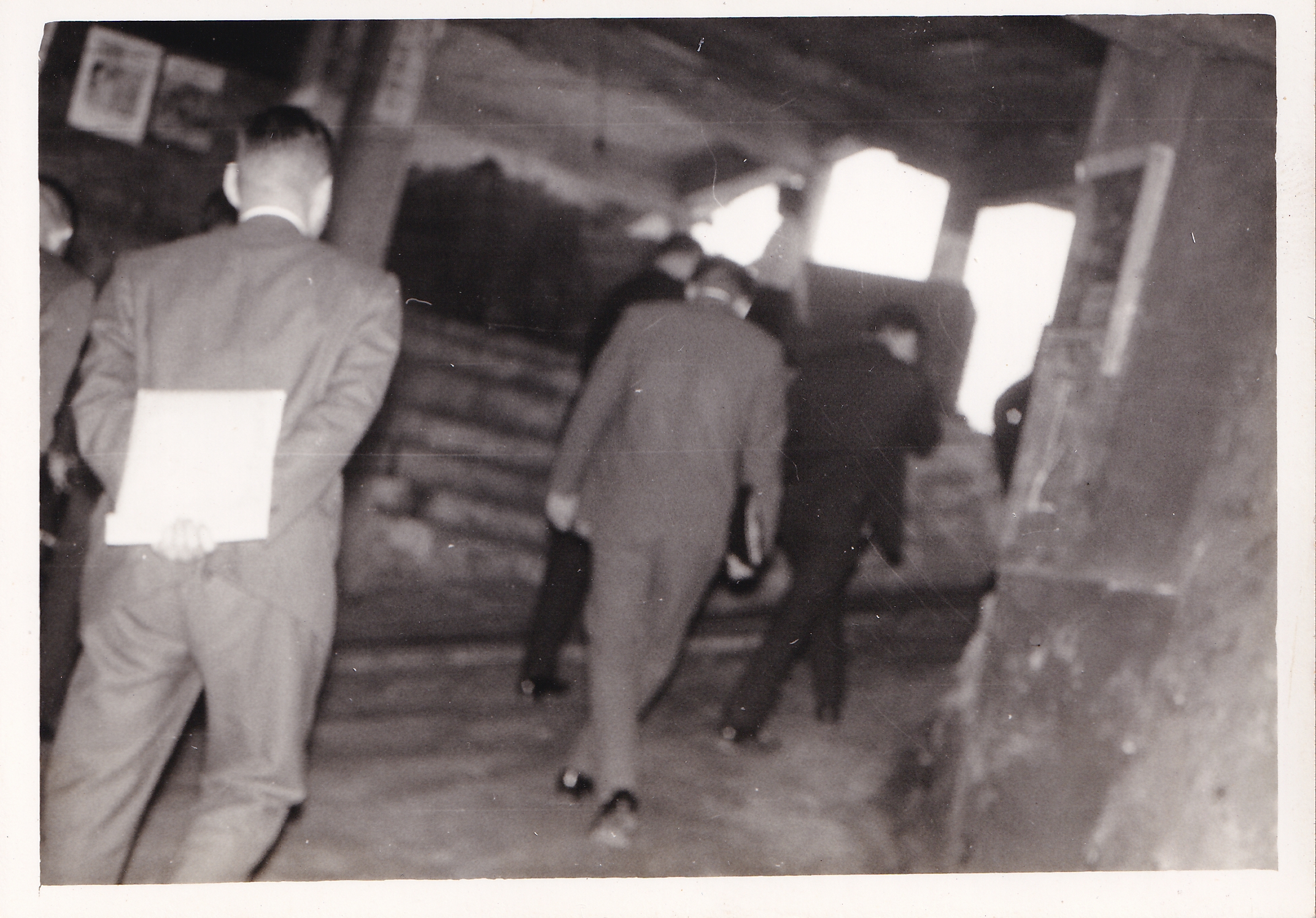 照片拍攝於民國60年代(1970年代),地點為新北市三峽區的海山一坑,主要紀錄當時的臺灣省議員拜訪海山一坑的礦場勘查場景,會議由陳天賜董事長主持並報告海山一坑的經營與安全管理措施。海山一坑以長壁法採煤,掘進工則是用風鑽機掘進再以人工裝入廢土石,採煤工則以十字鎬、風鎬煤機來挖煤。該公司的支撐系統主要以坑木與鋼拱併用的三節支撐,煤巷中的採煤面則是用坑木、鋼樑與較短的油壓摩擦鐵柱來支撐岩磐。海山一坑運用了許多先進的支撐系統來確保薄層煤礦的開採安全,其經營管理策略受到礦業界一致的肯定。