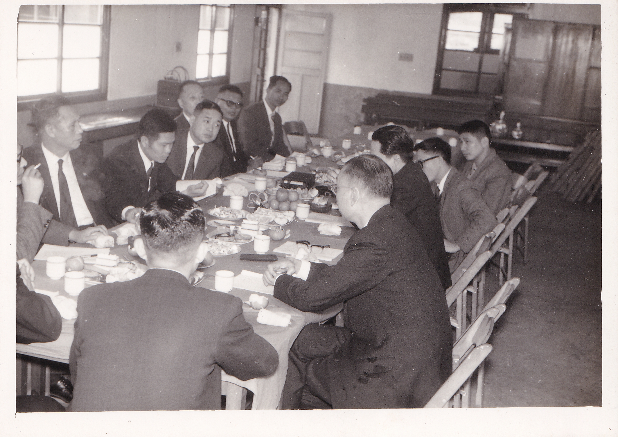 照片拍攝於民國60年代(1970年代),地點為新北市三峽區的海山一坑,主要紀錄當時的臺灣省議員拜訪海山一坑的會議場景,會議由陳天賜董事長主持並報告海山一坑的經營與安全管理措施。海山一坑煤礦位於新北巿三峽區,主要經營者為陳天賜與黃忠臣,過去曾是臺灣重要的模範礦場。但是海山一坑煤礦於民國73年(1984)12月5日曾發生重大礦災,奪走了93條人命,隔年(1985)6月再度發生爆炸,造成7人死亡,陳天賜為籌措救災資金將礦場售出,其後海山煤礦更於民國78年(1989)封坑。