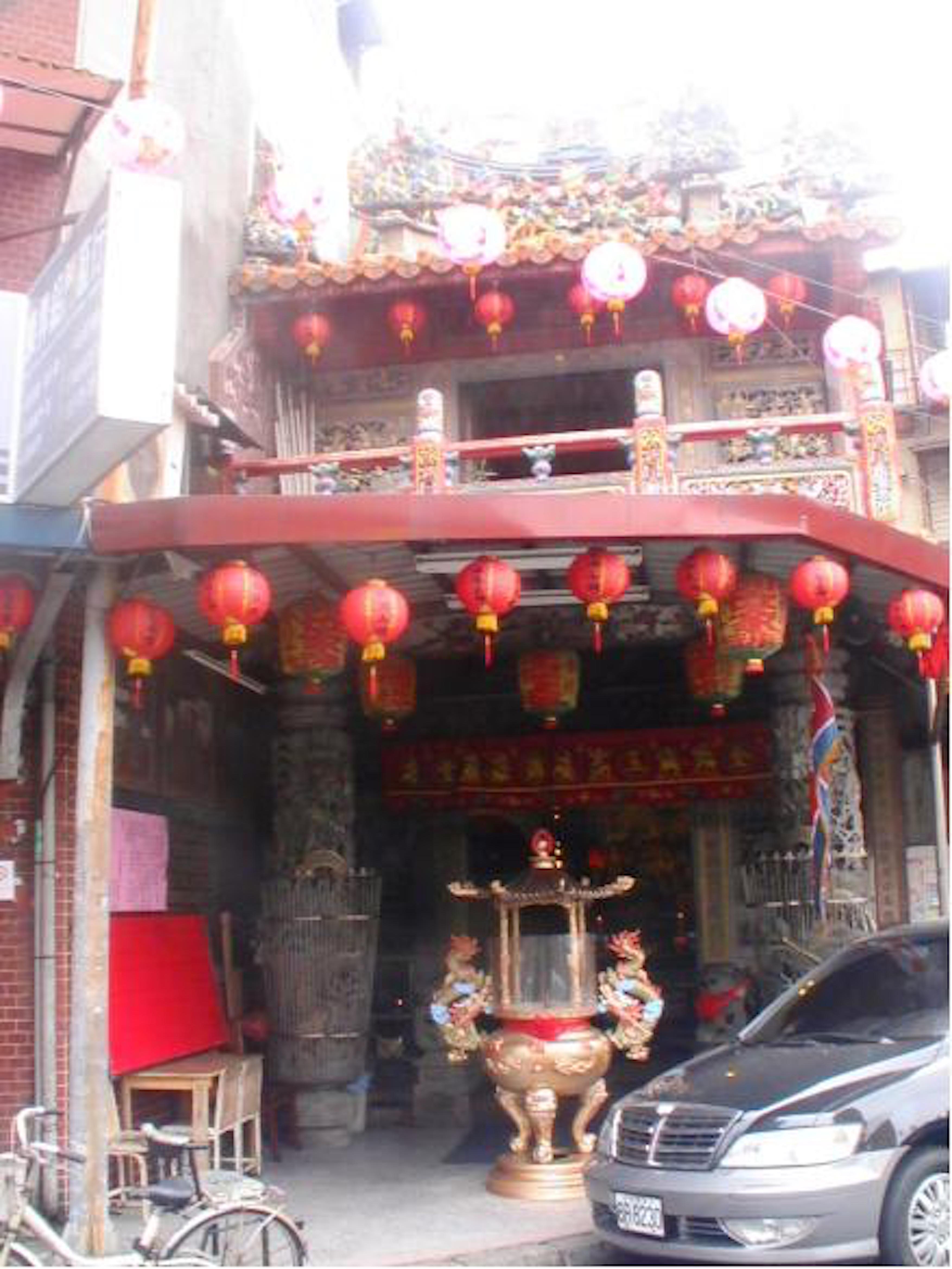 位松河橋松山橋間圳溝邊西岸,原舊址港仔溝口基隆河岸,俗稱草店尾土地公廟,為錫口頂街頭最古老的福德廟。草創建於康熙29年(1690年)在數十年前因河岸整治築至現址 。 這是錫口街最老早的福德祠。相傳成立於清康熙庚午(39)年(1700)。稱之為「草店尾福德廟」。也是錫口街的頂街福德廟,或「上福德廟」。民國七十年(1981)的時候,,由於興建歹成堤防,廟宇被迫拆除。於是有王金連者捐一塊地,地方人士共同集資興建新廟,在民國七十九年(1990)落成。