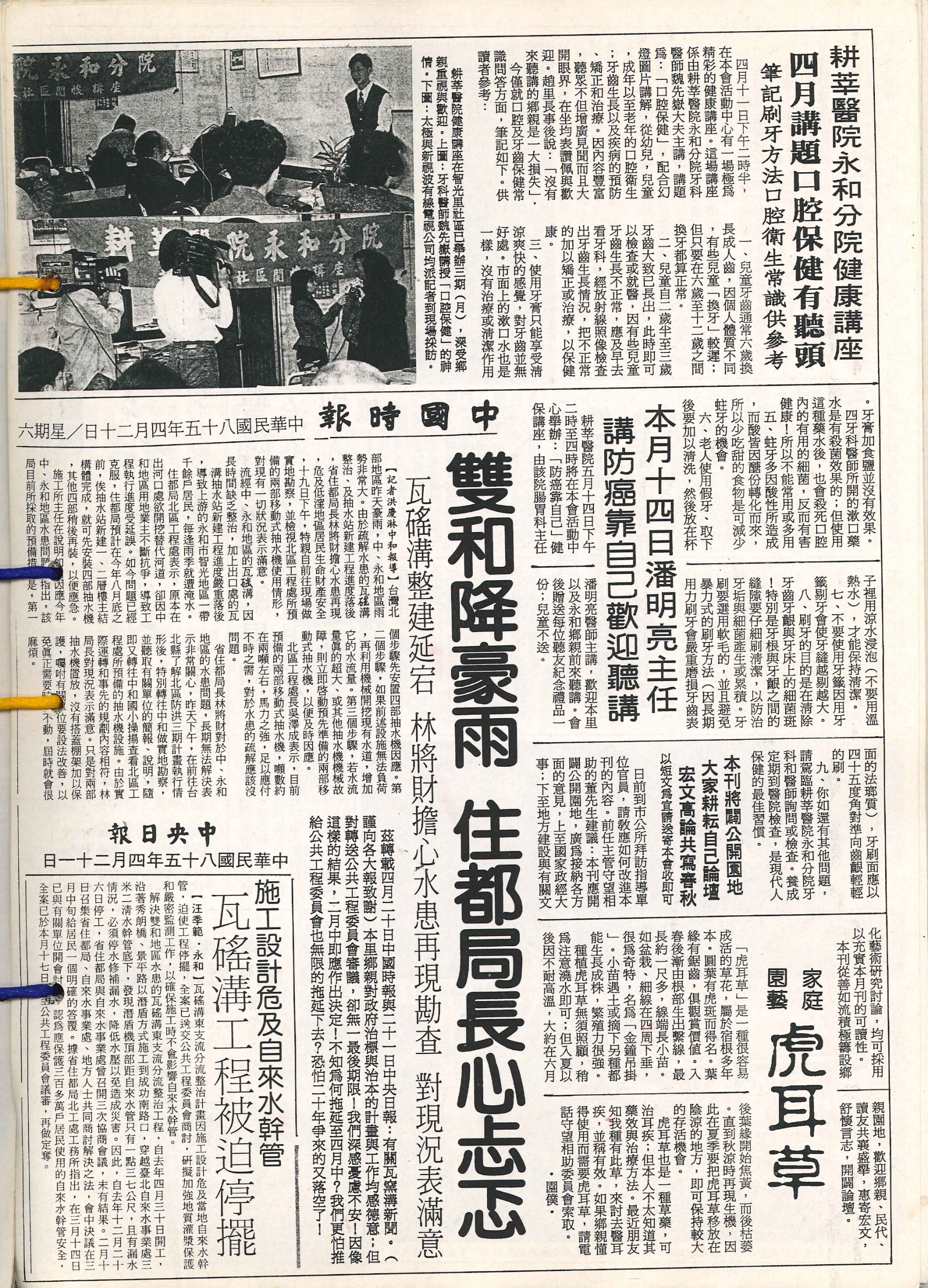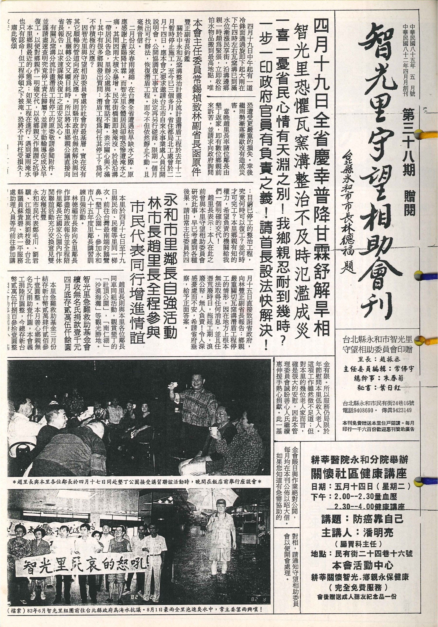 《智光里守望相助會刊》民國85年5月號轉載《中央日報》4月21日報導,瓦磘溝東支流分流整治計畫,因施工設計危及當地自來水幹管,迫使工程停擺,全案已於4月17日交由公共工程委員會商討,研擬加強地質灌漿保護和嚴密監測工作,以確保施工時不會影響自來水幹管。