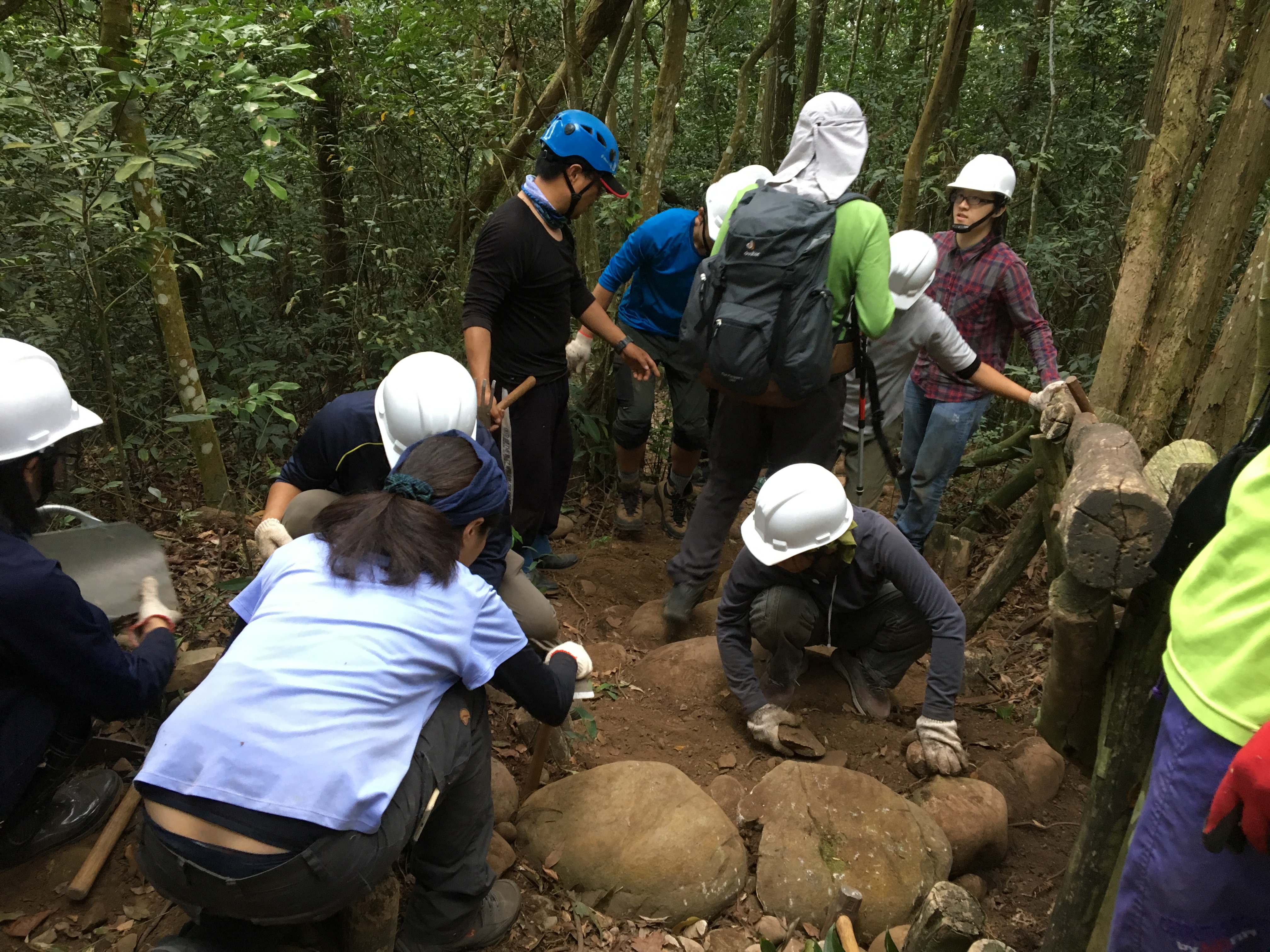 秋季班學員於11/25及12/2繼續進行大坑5-1號步道改善工程,此次投入工項施作人次有50人次,除重新疏通導流溝並完成後續約30階石階。步道志工並持續協助台中市政府辦理台中市百里登山步道鋪面調查工作。