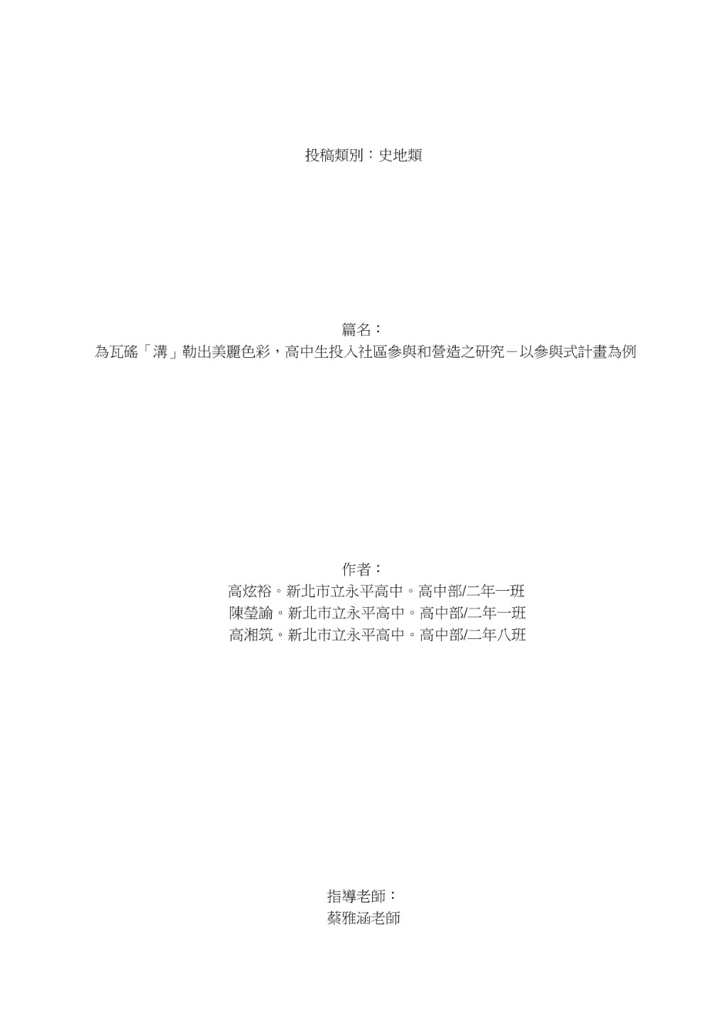 2019年,新北市立永平高中的學生以菁英課程成果投稿小論文,獲得優等的作品,篇名為《為瓦磘「溝」勒出美麗色彩,高中生投入社區參與和營造之研究-以參與式計畫為例》,作者為高炫裕、陳瑩諭、高湘筑等人,指導教師蔡雅涵老師。