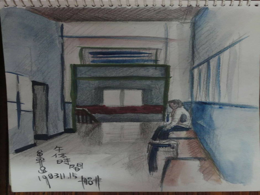 這幅〔加工區工廠 午休時間 〕作品時間為 1983年(民國72年) 速寫。王金選介紹作品時寫道:『當年在加工區上班,中午吃過便當,大家都在休息,我趕緊把握短暫時間,拿出素描簿努力練習畫畫……,因為我知道“努力,才能創造機會!”』。