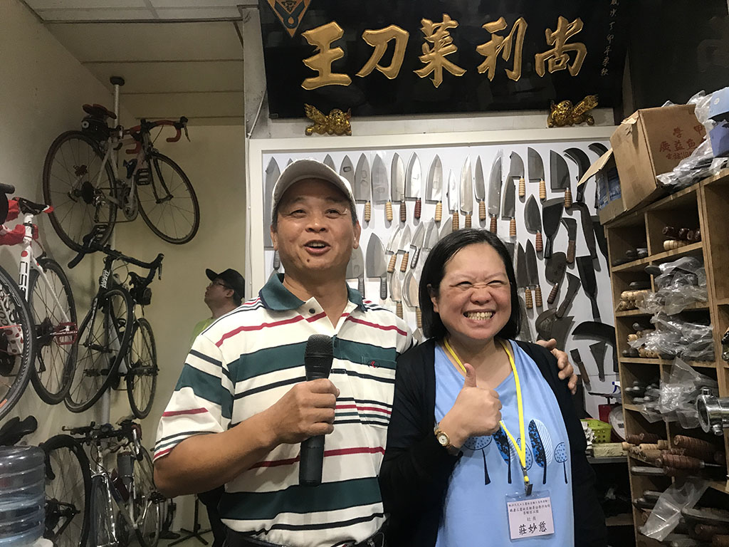 此照片為其中一站:三蘆社區報第26期勞動百工圖-尚利菜刀王。菜刀達人-蘇春旺,磨了大半輩子的刀具,在場民眾以為磨刀具是夕陽產業,在蘇老闆介紹下才知道此行業:從外科醫生的手術刀、廚師常用的屠刀……經過他的雙手從鈍刀變得極為鋒利,甚至從外地指定要他磨刀,是個與生活極為貼近的產業,打破大家的預設,對產業有新的認識。