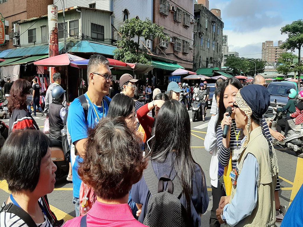 其中一站:三蘆社區報第40期勞動百工圖-模具打光師李有諒,他也是蘆洲木屐第三代傳人,由蘆荻社大培力成為鄉土教師,照片中他正在帶領著大家走訪蘆洲菜市場,跟著有諒穿梭一些小巷弄,同時也一邊聽著他分享蘆洲菜市場是他以前上下學的必經之路,以及小時候在上學期間和在菜市場發生的一些小趣事。