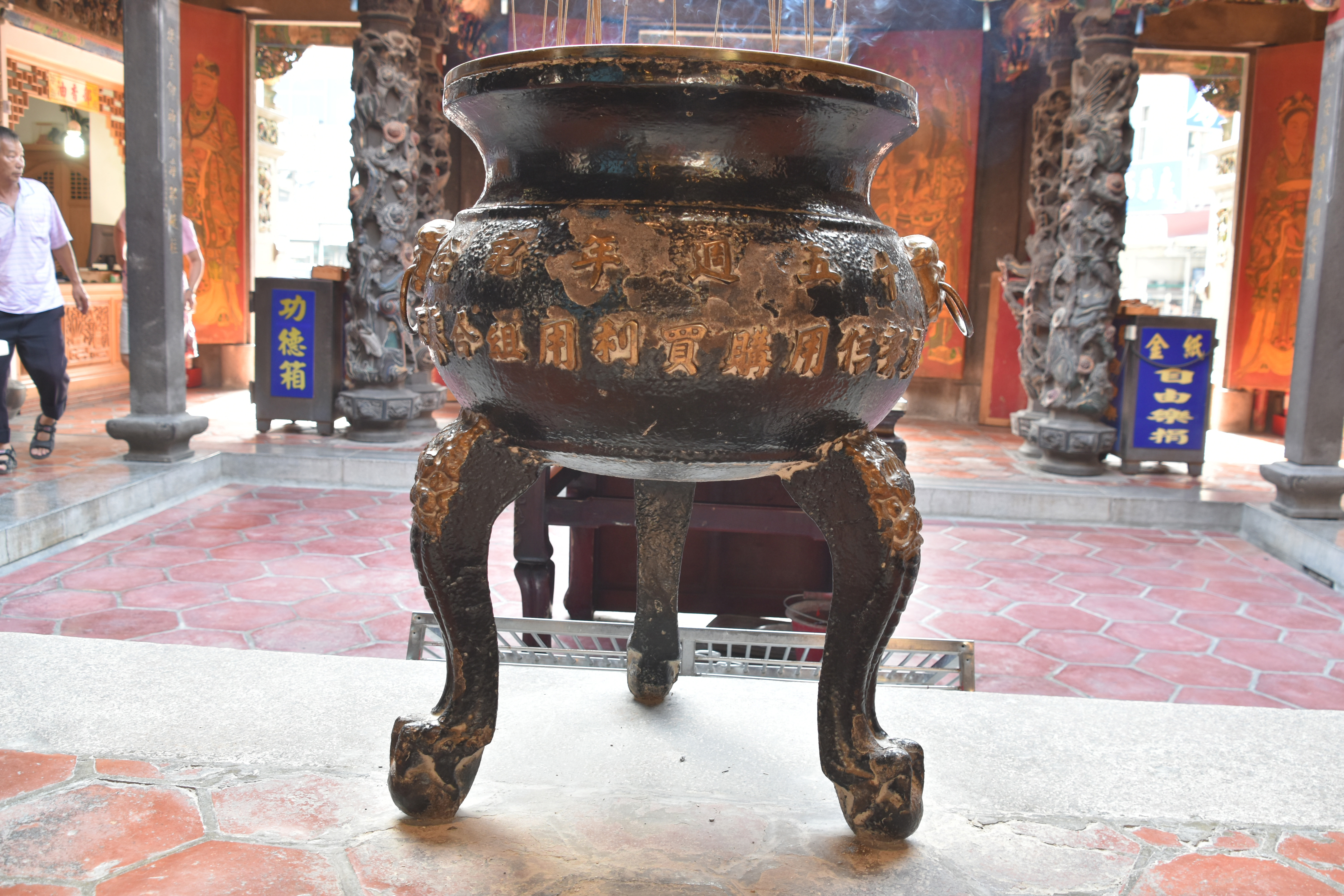 該爐兩側以獅咬環為耳,三足為獅吞獸爪,立於一龍珠上。爐身正面鑄有「拱範宮天上聖母」,背面則見刻有「十五週年紀念」、「麥寮信用購買利用組合奉獻」字樣,此爐現仍做為媽祖爐之用。