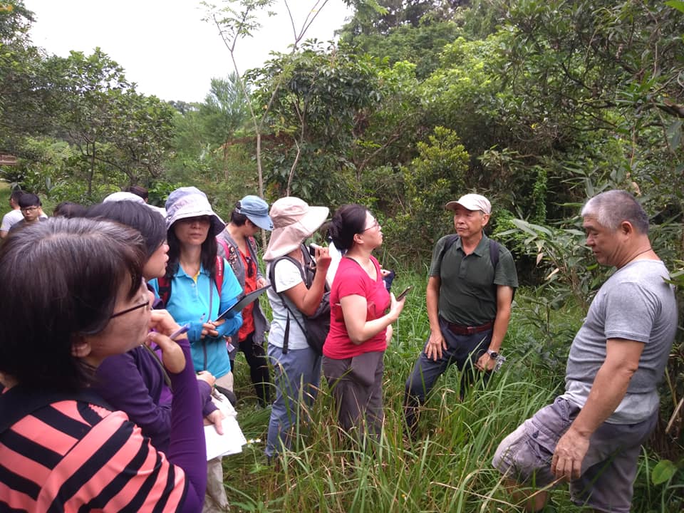 接著陳世揚老師特別介紹山刈葉,這種植物是芸香科,樹葉都有油點,嫩莖是十字對扁,老莖是木質圓形。其他還有夜間開花的穗花棋盤腳、老荊藤、胡椒科風藤、武竹、羊奶頭、杜虹、文殊蘭、水冬瓜等等。途中還發現閃閃發光的圓翅紫斑蝶蛹、尺娥、榕果小蜂,非常驚喜。
