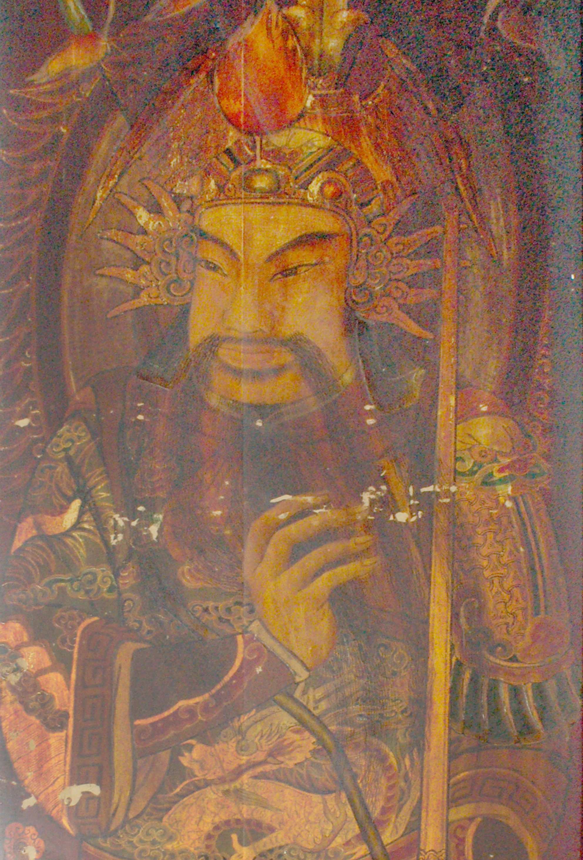 這對是莿桐天瑤宮舊廟的彩繪門神秦叔寶和尉遲恭,雖然經過香火煙燻依然保有明亮的色彩。
