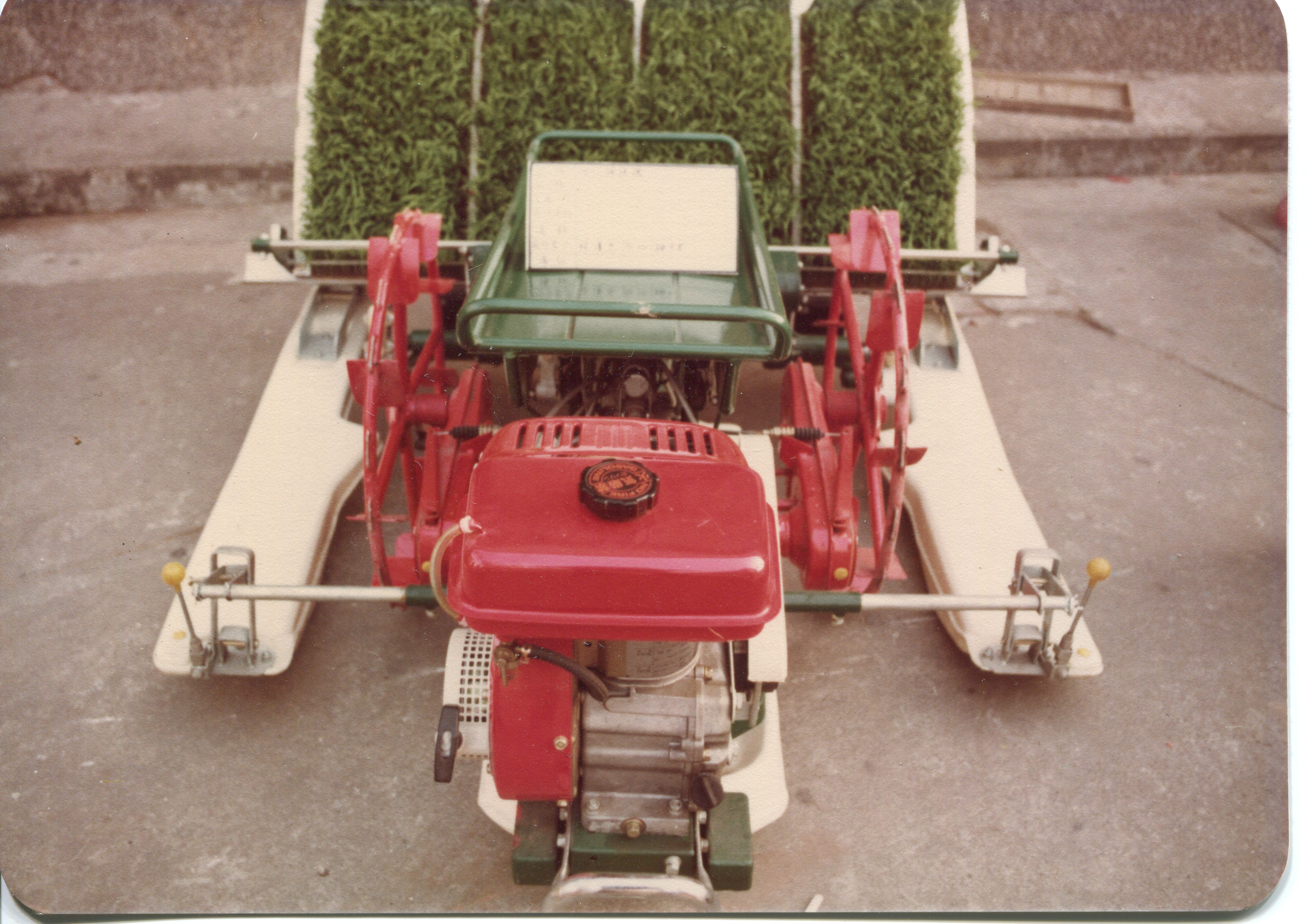 這張照片是民國70年,一場在斗六鎮西國小舉辦的農產品展覽所攝,展出當時最先進的插秧機,在同樣的時間下,相比於之前需要多人才能完成的插秧工作,插秧機在田中來回一趟便可以插整齊的八行秧苗。大大減少人力的運用。