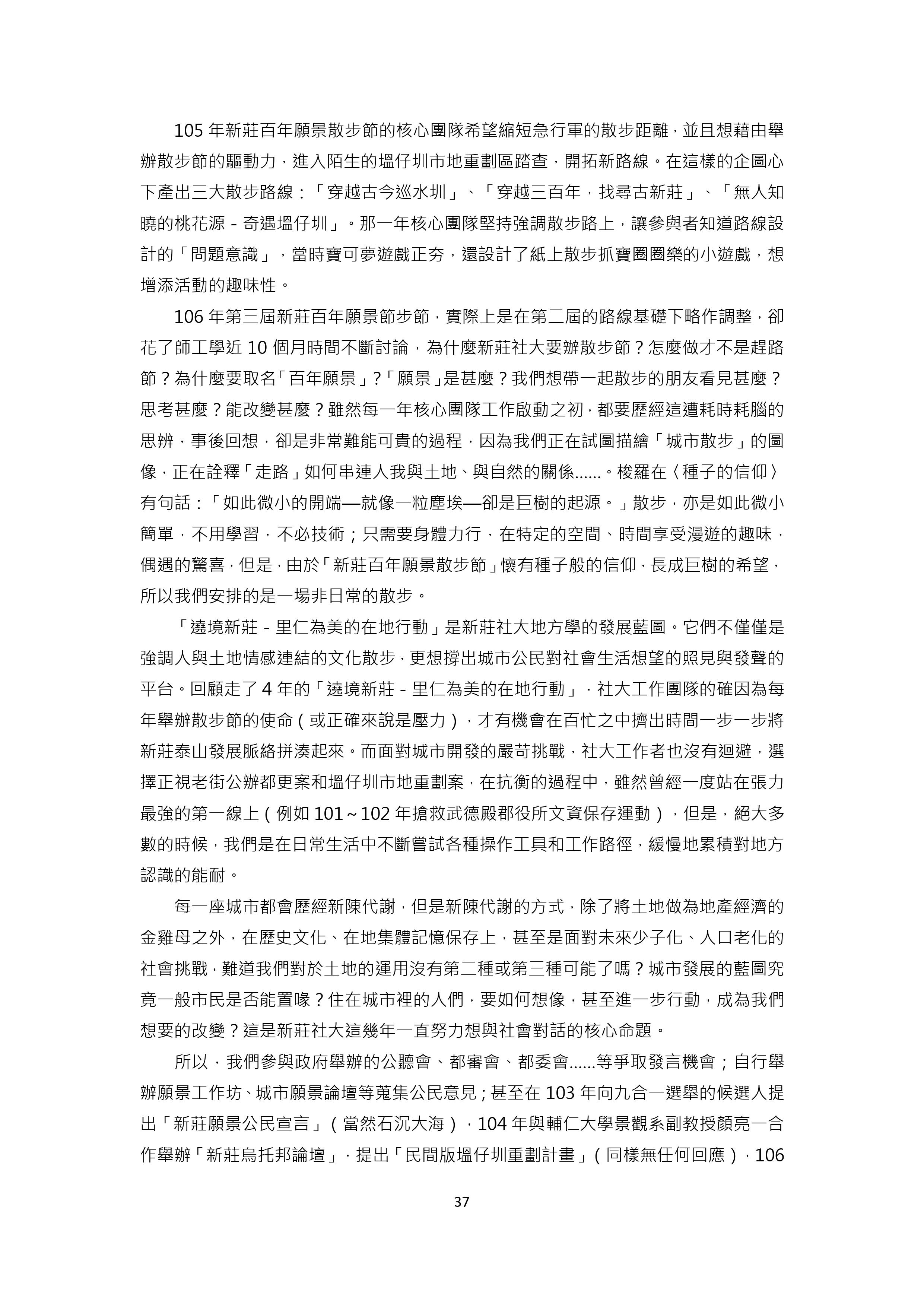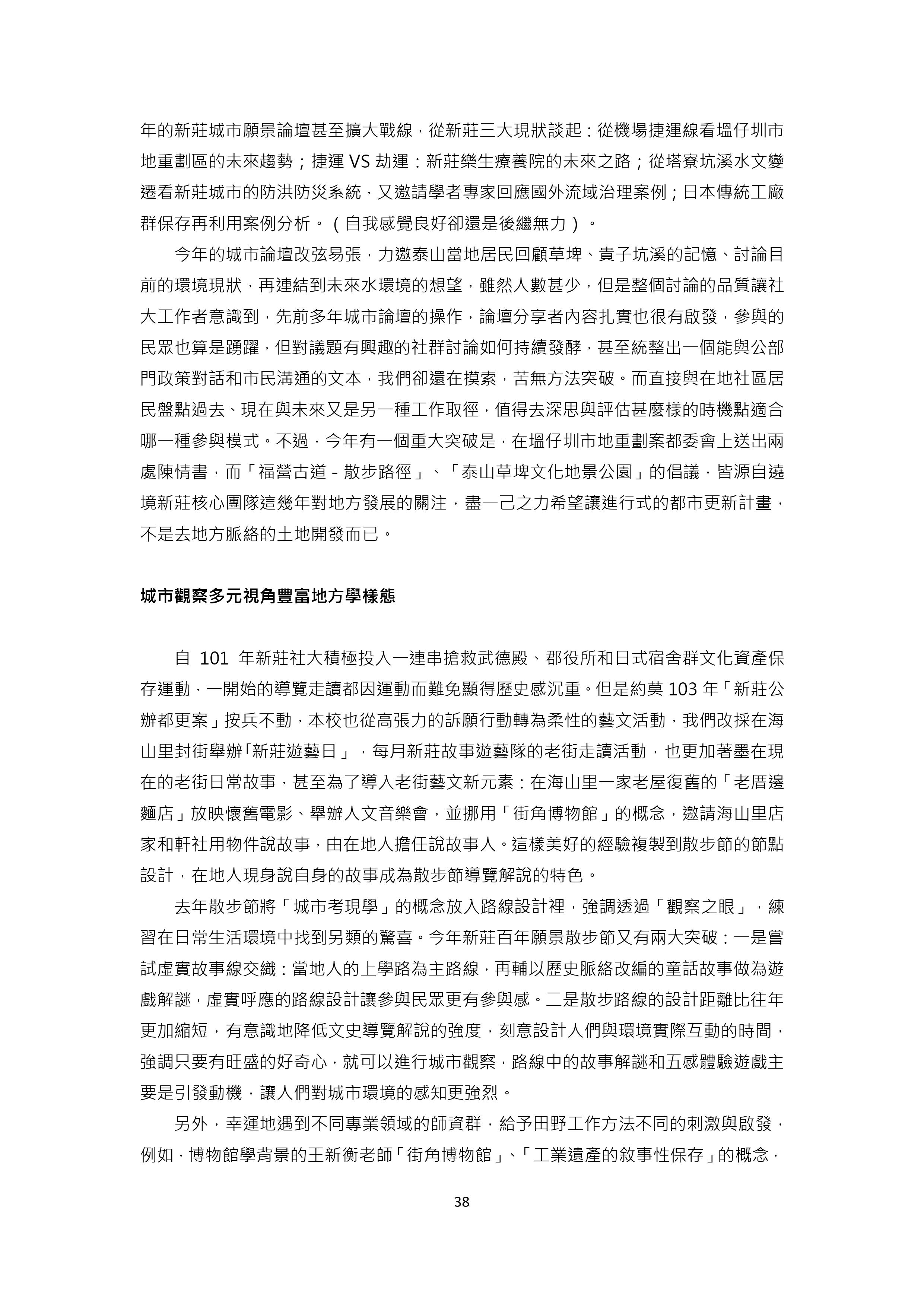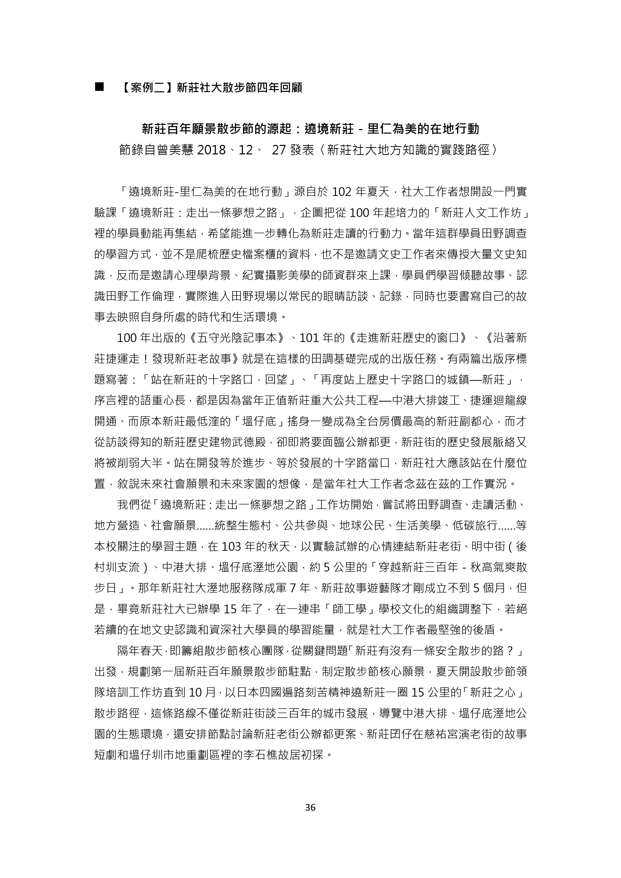 本文為新莊社大工作者曾美慧於第二年計畫中寫作的作品,內容描述新莊社大散步節四年的主題脈絡。