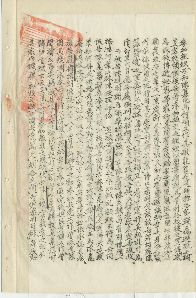 判決書稱:「本省三十六年事變後在逃之匪要陳篡地、劉占顕等潛組「中國共產党台湾工作委員会」及「台湾民主自治同盟」以台人治台為台吸收台籍青年參加入盟並籌組各支部從事地下活動,意圖組織地下武裝部隊為匪軍攻台策應顛覆政府」、「查被告陳崑崙係陳篡地之姪於三十八年加入奸黨工作研讀「光明報共產黨史綱」等書負責台中支部吸收黨員進行地下活動」。
