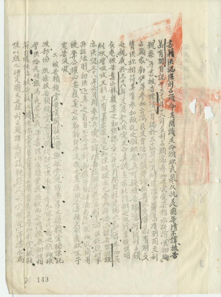 判決書稱:「本省三十六年事變後在逃之匪要陳篡地、劉占顕等潛組「中國共產党台湾工作委員会」及「台湾民主自治同盟」以台人治台為台吸收台籍青年參加入盟並籌組各支部從事地下活動,意圖組織地下武裝部隊為匪軍攻台策應顛覆政府」、「查被告陳崑崙係陳篡地之姪於三十八年加入奸黨工作研讀「光明報共產黨史綱」等書負責台中支部吸收黨員進行地下活動」。