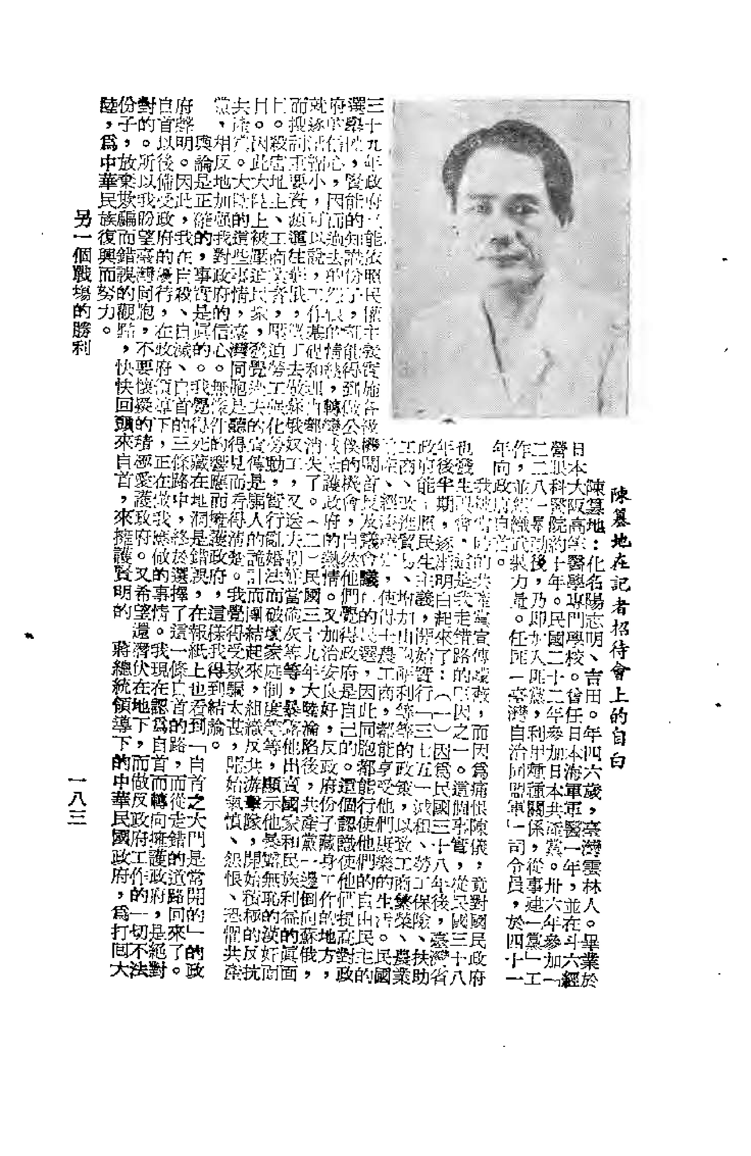 《另一個戰場的勝利》一書於1953年12月發行。發行及印刷者為中國新聞出版公司。內文由包括中央日報、台灣新生報、中華日報、聯合報、台灣公論報等八個當時著名的報紙媒體記者執筆,主編署名張大山。書名的「另一個戰場」指的是「肅清匪諜」之意。