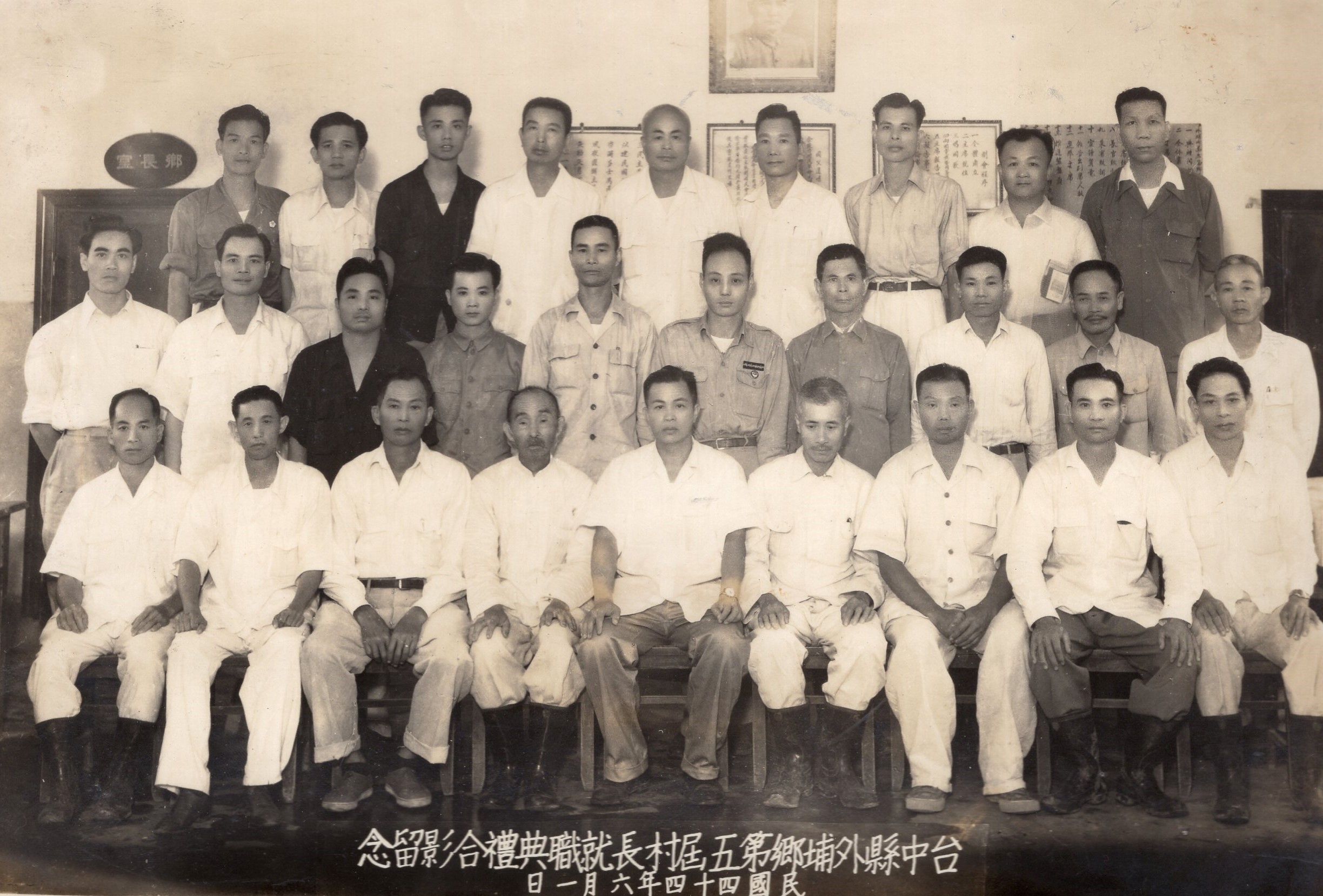 本物件為1955年(民國44年)外埔鄉第五屆村長就任照,此為黑白影像。拍攝地點於室內,背景可見國父遺像,門上有鄉長室招牌。影像中皆為男性,分成三排照相。坐在第一排左四的男性為許天象。影像下方有台中縣外埔鄉第五屆村長就職典禮合影留念、1955年六月一日字樣。