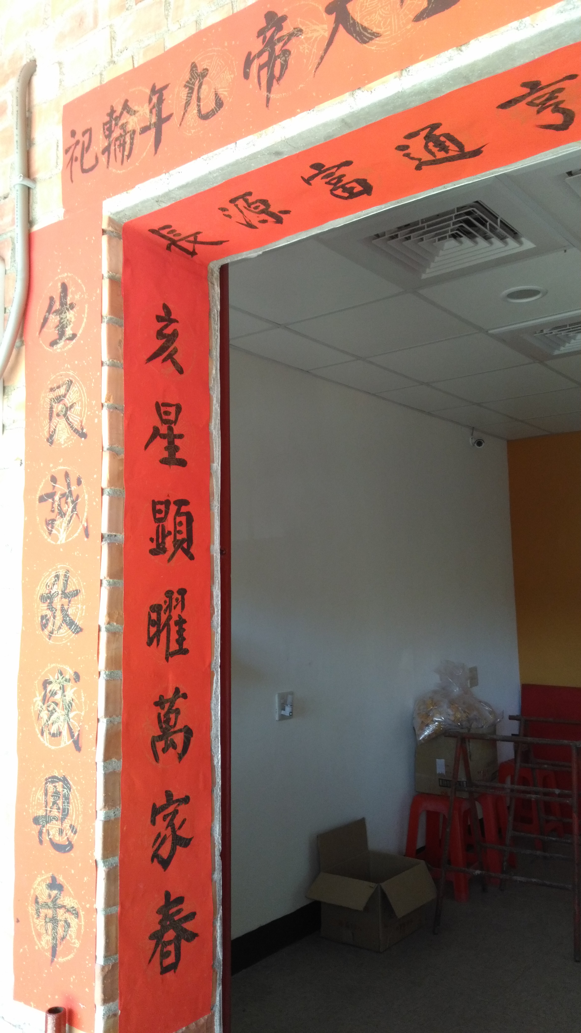於2019年(民國108年)國曆4月21日安爐的爐主厝,門內上方橫批是「四季亨通富源長」,右方上聯是「己歲呈祥千禧樂」、下聯是「亥星顯曜萬家春」,兩聯第一個字構成「己亥」,表明此處輪值奉祀年份的干支。這三句話,表達出大眾對歲時安樂、生活富泰的祈願。