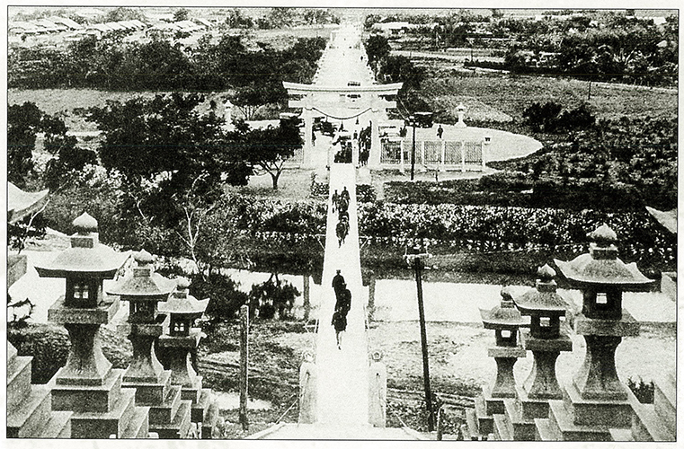 此張照片為1930年代從花蓮港神社俯瞰花蓮市的景象。花蓮港神社於1916年(大正五年)建於花蓮港市米崙山(今花蓮市美崙山),供奉天照大神、北白川宮能久親王及開拓三神。花蓮港神社供奉當時花蓮港廳神格最高的神祇,通過橋樑爬上石階,往下俯瞰,即可清楚地看到花蓮市的街區,這就是為何花蓮港神社選擇興建於此的原因。日治時期台灣神社的選址有特別的空間特性,選址時會考量興建於何處才能有莊嚴肅穆且令百姓崇敬的氛圍。根據1924年(大正13年)的法令「神社及社處理的相關要件」,其一神社的創設地點要遠離原來就有的市街地,其二社域要選定清淨地並在周圍植林。花蓮港神社的位置即符合以上條件。照片提供:邱上林。