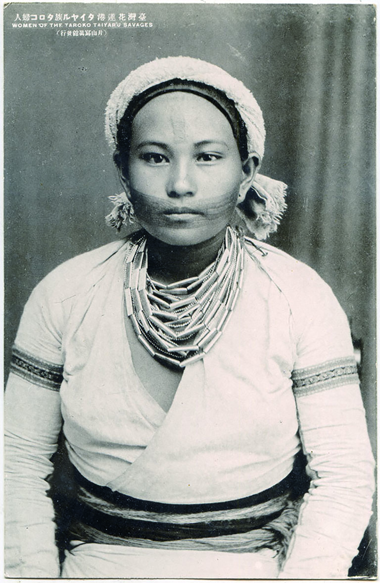 此張寫真是由日治時期花蓮港廳內重要的相片館片山寫真所發行,位於繁華的黑金通上(今花蓮市中山路)。圖中可見一位盛裝打扮的太魯閣族婦女,紋面於額頭與雙頰上,這是太魯閣族女性擅長織布與耕作後,才有資格在臉部印上象徵美麗、勇敢、避邪的圖案。這樣的印記在太魯閣族的文化中還有一個重要的意義,即太魯閣族相信人在逝世後會有一道彩虹橋,沒紋面者會無法前往橋的另一端與祖靈們相會,因為有紋面祖靈才會認得你是同一個族群的子孫。平常的太魯閣族並不會穿著像圖中一樣盛裝打扮,通常是祭儀、結婚等重要時刻才會以這樣出席。此影像收錄於2016年(民國105年)由花蓮文史工作者葉柏強先生撰寫、花蓮縣文化局出版的《顧我洄瀾:花蓮歷史影像集》,書中收錄了大量花蓮在地的歷史影像,如老照片、繪葉書、宣傳摺頁、郵戳樣式等,是深入花蓮文史的重要書籍。
