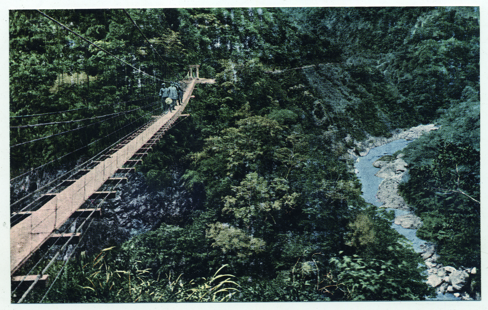 1914年(大正3年)的「太魯閣事件」結束後,總督府陸續在太魯閣峽谷地區增築了內、外的太魯閣理蕃道路,以便於掌管太魯閣地區的原住民族群。清領末期的後山北路在當時是否真的有開通,許多人不無疑問,但在日治時期連接蘇、花間的道路,確實不再只是社路或獵路的規模而已。在事件之後,因政情逐漸的趨於平穩,此理蕃道路上的警察機構時有改易廢置的情況,甚至連同道路本身也逐步的拓寬或新建鐵線橋,以方便對外的聯絡與通行。日治時期為了交通與治理等因素,在多處修築鐵線橋,在今太魯閣峽谷中,便有一座「山月吊橋」是重建日治時期的鐵線橋而成。此影像收錄於《顧我洄瀾:花蓮歷史影像集》一書,為葉柏強先生撰寫、花蓮縣文化局於2016年(民國105年)出版。書中記錄了花蓮近百年的城市樣貌,是一本擁有豐富文史與圖像資料的書籍。