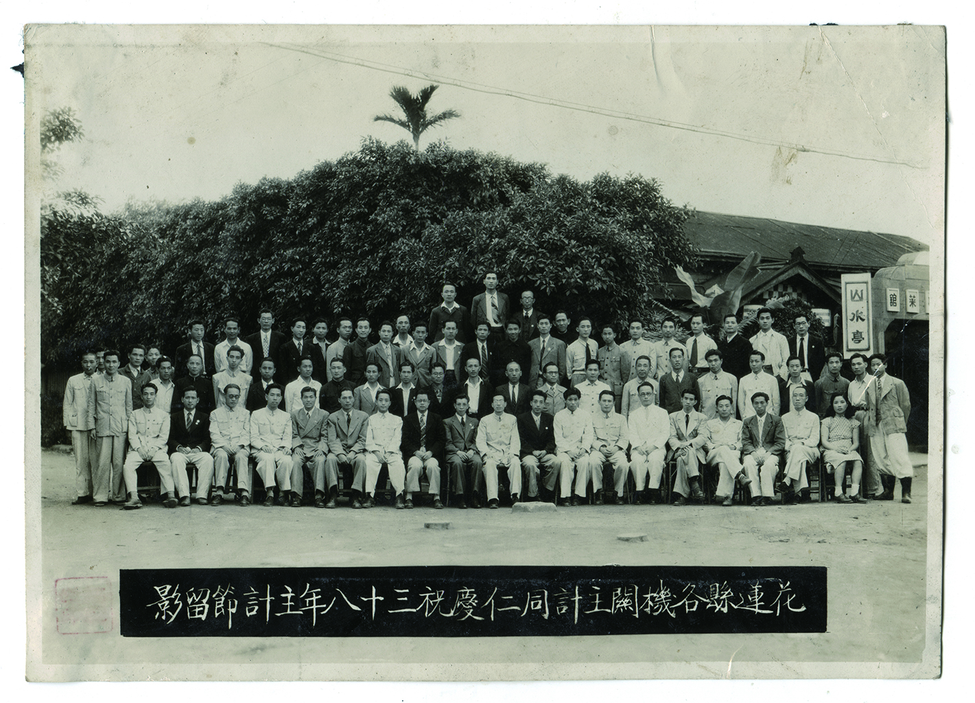 此張照片拍攝於1949年(民國38年)的山水亭前面,為花蓮縣各機關主計同仁慶祝三十八年主計節之留影。山水亭為當時相當著名之酒家,其與天仙閣同為「溝仔尾」紅燈區中有名之店家。只是與天仙閣不同之處在於天仙閣為茶室,於是山水亭之消費價格會比天仙閣來的高二、三倍,但是其與茶室相同皆是有女性坐檯陪酒、陪茶的特種行業,且皆是需要付小費給陪茶、陪酒之女侍。而在酒家上班之侍女人稱之為「酒家女」,日本則有人稱「酌婦」。現今對喜歡日式老建築的人來說,信義街及成功街一帶是漫步挖寶的好所在,這裡在日治時期是茶樓、酒館的聚集地,如「東會芳」、「朝鮮亭」、「天仙閣」、「大觀園」等聲色場所都集中在此,在風華散盡之後,仍有一些老房子留存下來。此影像收錄於《顧我洄瀾:花蓮歷史影像集》一書,為葉柏強先生撰寫、花蓮縣文化局於2016年(民國105年)出版。書中記錄了花蓮近百年的城市樣貌,是一本擁有豐富文史與圖像資料的書籍。
