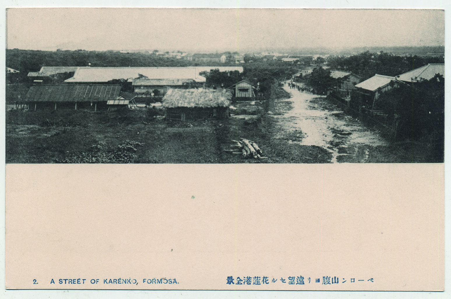 此照片名為〈遠望花蓮港全景〉,拍攝的年代相當早,大約是明治末年大正初年間的1910年代時,從景色可以推測出是花蓮市中正路方向看過去的景況,並隱約看到最早的築紫橋,也就是現今的中正橋。馬路左邊在當時是臺南衛戍病院的花蓮港分院,為現今將軍府所的在,右邊則是剛剛設立不久的花蓮港分屯大隊,左邊中央的花崗山上當時是一大片樹林,而遠方的花蓮港此時人煙稀少,交通不便,房子也很少。現今的花蓮市因建築、道路的整建,與日治時期的街區樣貌已相差甚遠。此影像收錄於《顧我洄瀾:花蓮歷史影像集》一書,為葉柏強先生撰寫、花蓮縣文化局於2016年(民國105年)出版。書中記錄了花蓮近百年的城市樣貌,是一本擁有豐富文史與圖像資料的書籍。